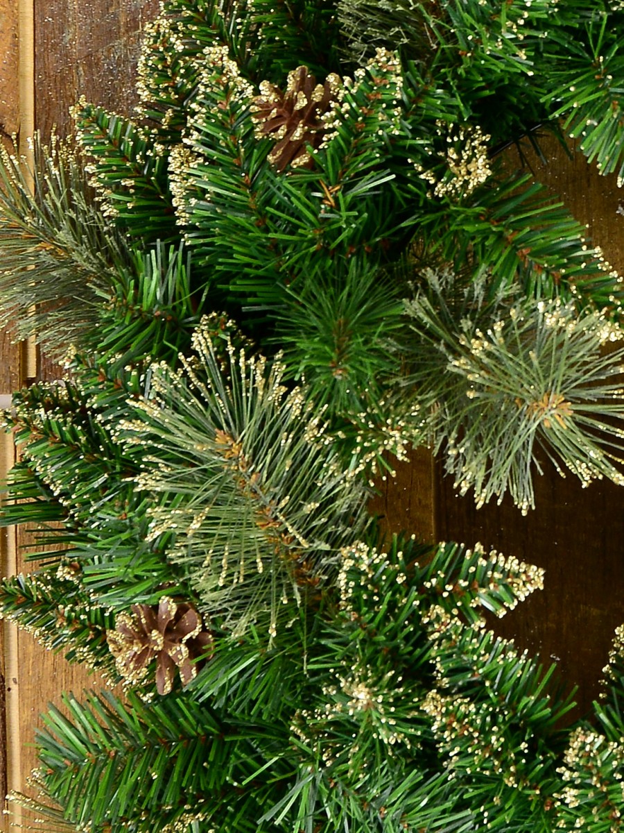 From hanging at the door to placing it on the mantle beside the candles, the Christmas wreath is a beautiful addition to your festive spirit. With the increasing designs and flooding markets, it has become convenient for people to buy wreaths that line to their taste. If you are someone who likes a traditional touch to their decorations, then this balsam pine wreath is a must-have. This 56cm x 16cm x 56cm wreath comes with pine comes and two different styled pine branches dusted with golden glitter. The dense green pine branches give it an evergreen look that is much sought after for Christmas. This Christmas wreath gives a natural look to your decorations. It is long-lasting and requires some sprucing before adorning your house. This beautiful Christmas wreath is sure to recieve positive comments and leave your guests in awe.