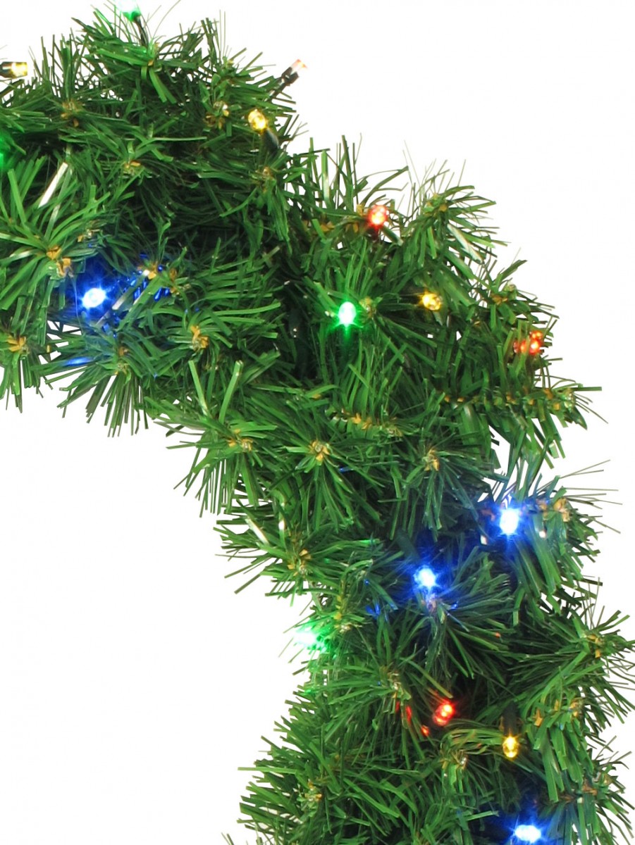 Deck the halls with this beautiful pine wreath to bring a festive touch to your home for the holidays. Hang it outside on the front door to welcome guests, or inside above the mantel to bring warmth and cheer to your home. Concealed within its boughs are 60 multi coloured LED lights that can be connected to other Lighting Connect products to create a spectacular holiday display. This wreath measures 60 cm x 13 cm 60 cm�and, when connected to the power source adapter, can display eight different special effects including �still burn.� Lighting Connect lights are designed to be used with Lighting Connect power sources only. World wide shipping available.