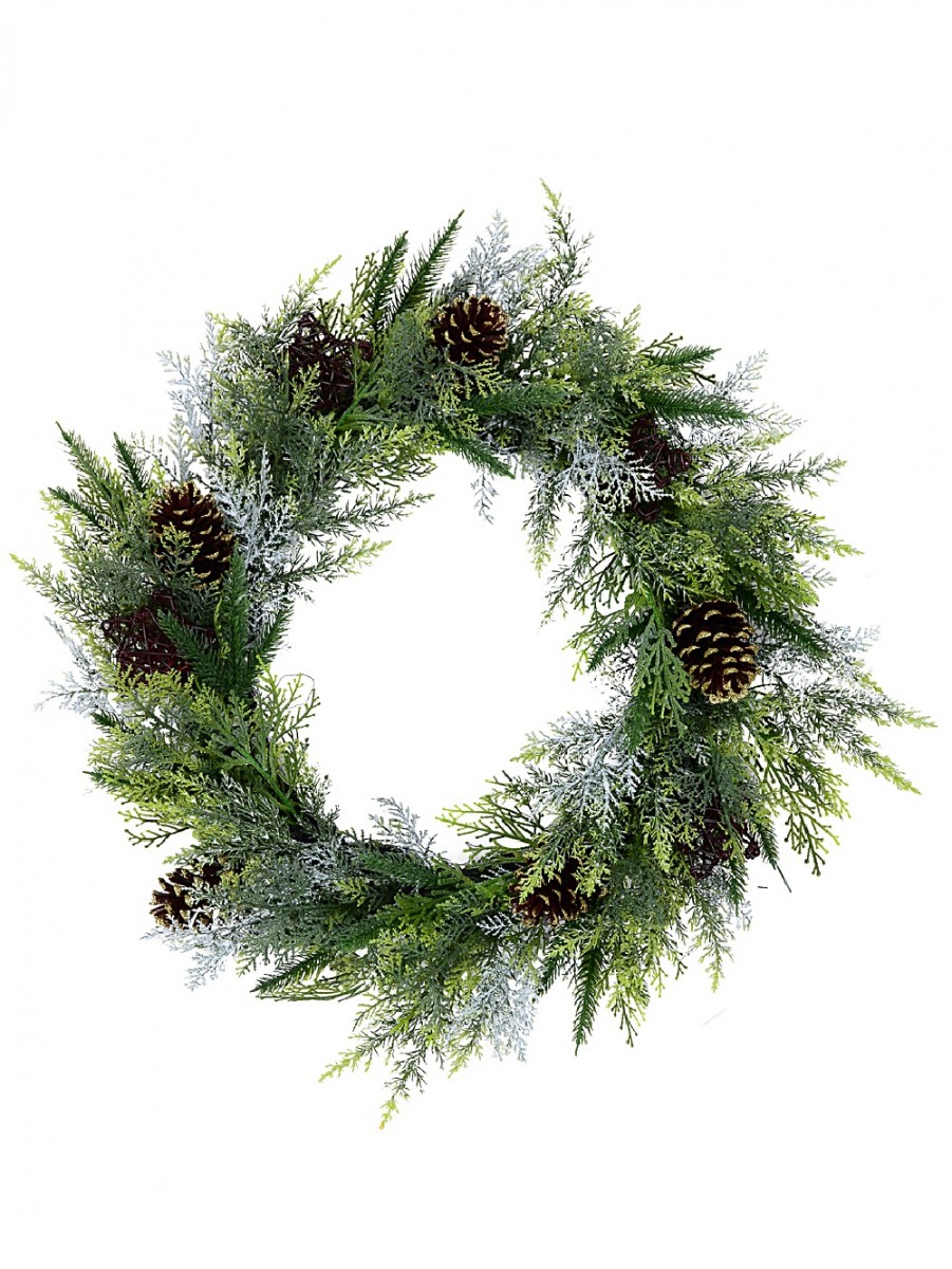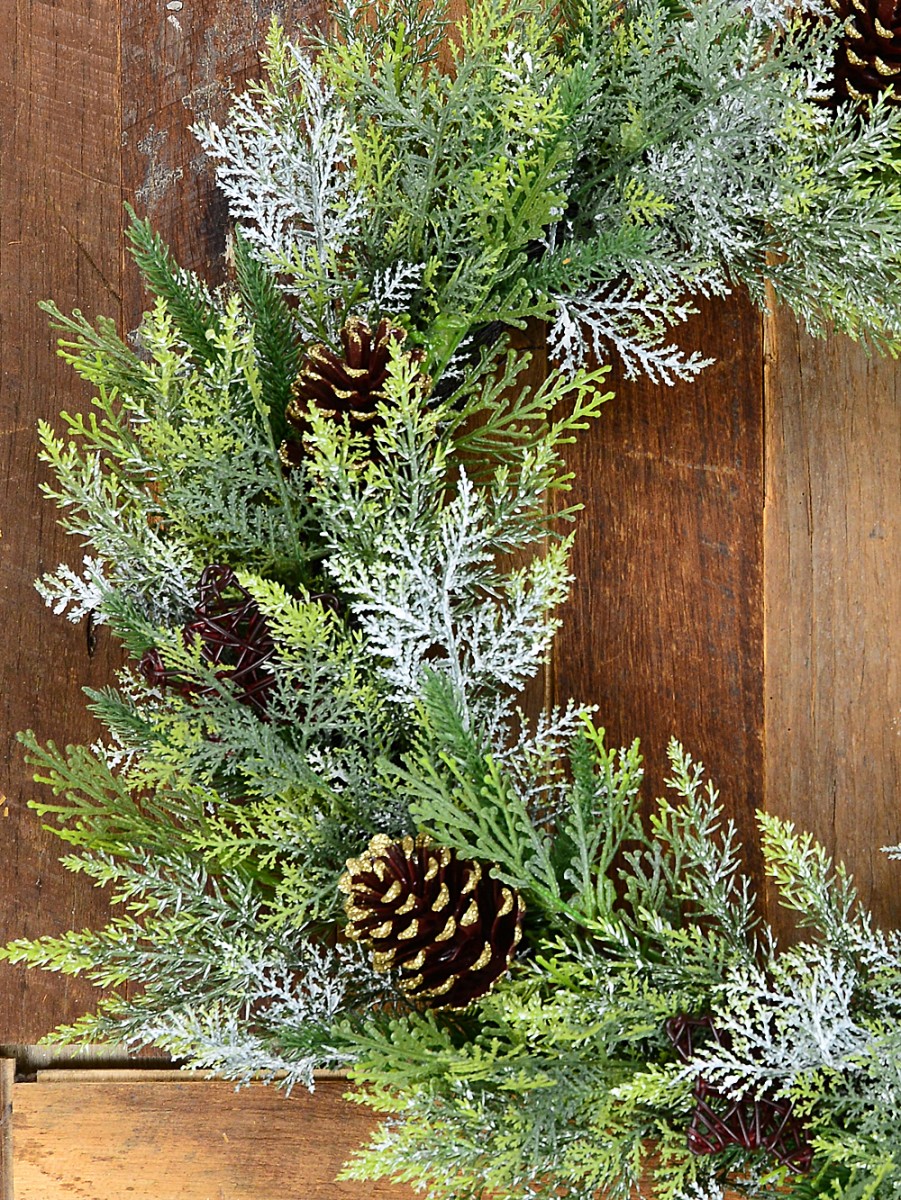 Each wire-spun wreath is decorated with three different pine tip varieties, and topped off with pinecones, plus rattan look stars that bring out even more seasonal cheer. There are lightly flocked pine tips for that snow-dusted effect we all secretly adore. It's strong but surprisingly light at just 1kg, and sized at 60cm x 12cm x 60cm, so it's ideal for front doors, windows, mantles, or even your stair railing if that's where your spirit takes you.