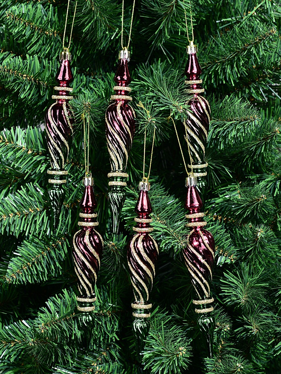 If your Christmas decorating style is all about glitz, rich colour, and making a bold, joyful impression - oh wow, we can just imagine these 6x 18cm Shiny Red & Green Textured Icicle Finials With Gold Glitter Lines shimmering on your tree. They're generously sized at 35mm x 35mm x 18cm and each finial has this textured icicle shape that really makes them feel magical - not like any ornaments you'll see in every other home. Plus, each one's topped with a gold cap and hang string for extra sparkle. The colours have this optical fusion effect (so the red and green blend right before your eyes into a deep, enchanted shade) with swirling gold glitter lines that catch every twinkle of fairy light and look incredible under moody candlelight too.