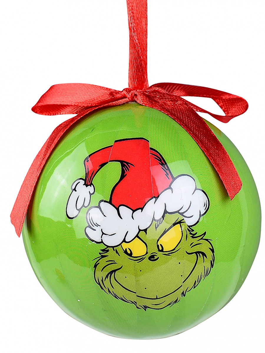 They're officially licensed Dr Seuss Grinch ornaments, which matters heaps for true fans of classic tales. Three green baubles feature the Grinch's iconic face - that sneaky grin, you know? And three red ones with his foot tapping a bauble. Perfect balance! The red ones have a green ribbon and green ones have a red ribbon to hang them.