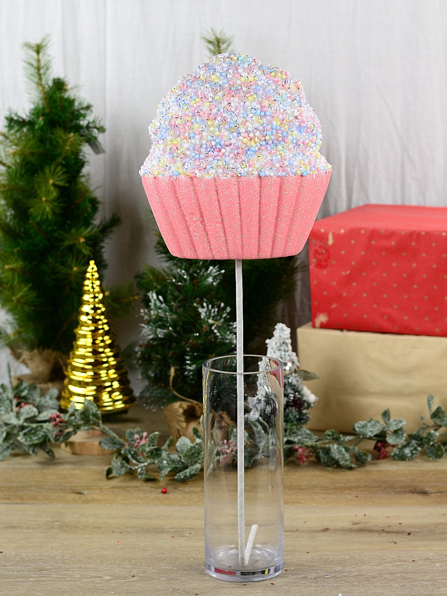 We can't get enough of this pastel cupcake - it looks good enough to eat! Our 71cm Pink Cupcake With Pastel Sprinkles & Silver Tinsel Long Christmas Stem is sprinkled with festive magic, swirled icing, and a whole heap of Christmas cheer. We always say Christmas is more fun with a touch of whimsy, and this sweet decorative stem delivers. It has a pink cupcake case, white textured ‘icing', iridescent glitter for extra sparkle, and the most magical pastel sprinkles (with flecks of shiny silver tinsel that catch the light beautifully). At 22cm x 12cm x 71cm it's sure to make a statement on any tree, wreath, garland, centrepiece, bouquet or floral arrangement. And we think it's just perfect for families who love getting creative at Christmastime - simply cut the stem for your ideal height and have fun decorating together. Pair it with other decorations from our delicious Christmas collection for a sweet treat theme the kids will love.