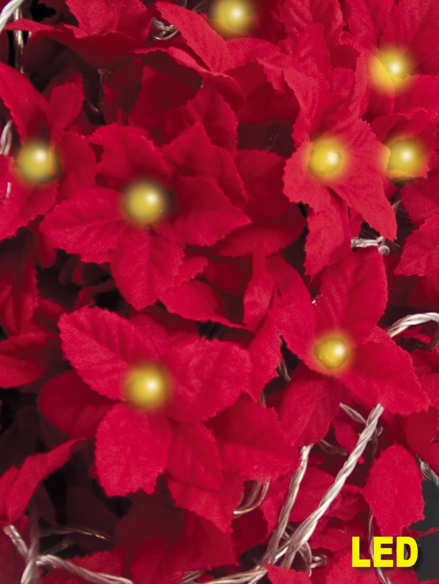 Stunningly beautiful, this exquisite light display will complete the spirit of Christmas. It comes with a breathtaking bouquet of beautiful Poinsettia-shaped flowers that features a heart-warming red color. It really sets a beautiful atmosphere that will make Christmas nights more romantic and more reminiscent of love. Beautifully intricate, each petal is designed with such stunning realism and artistry. The flowers do look alive. And on the center of each flower sits a lighting fixture that glows dimly with such a warm golden tone. With a collective length of 12-meters, this string of lighted Poinsettia flowers can be strung around a Christmas tree. It can also be installed on walls be it indoors outdoors. For whatever purpose, this item will surely make a stylish and fashionable statement. And for easy plugging, it also comes with an 8-meter long extension cord. This makes it versatile and usable for all style and design purposes.