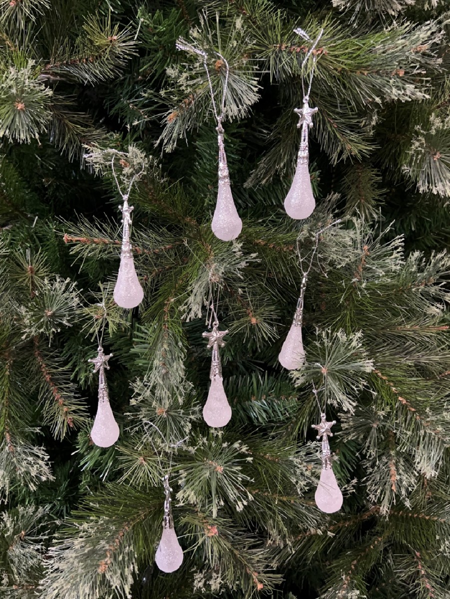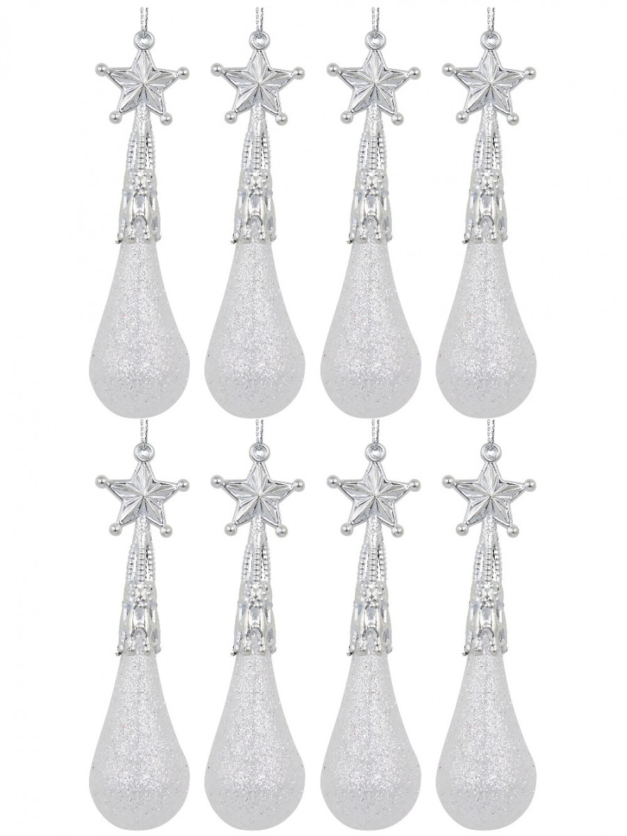 Christmas without decorations is incomplete! From elegant decorations to some traditional Christmas decorations, you have the liberty to choose according to your style. If you are looking to decorate your room in a vintage style, folk art style or mid-century modern Christmas manner, look no further. This white glittered teardrop Christmas tree hanging is perfect for you! It comes in pairs with the top decorated with a star on each. White, regarded as an element of purity and innocence, carries a great significance for Christmas. Jesus Christ, like the colour, brought light in the darkness and sacrificed himself for the betterment of people. Apart from that, white also signifies snow. So if you are looking for a wintery feel, go for it! It is zero maintenance and comes with a corresponding silver string.