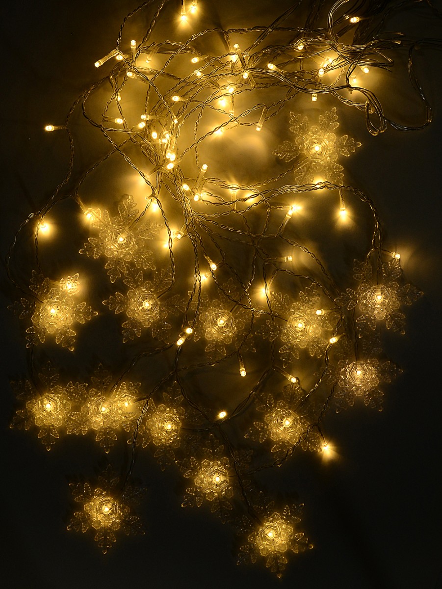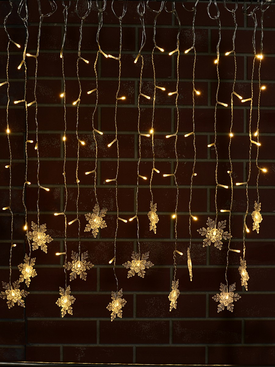 The 2.1m long icicle string fairy lights feature a charming array of 90 warm white LED concave bulbs. These lights are elegantly complemented by the addition of delicate, 85mm opaque snowflakes at the ends of the icicle strands. The warm white glow emitted by the bulbs ensures a cosy and inviting ambiance, ideal for all your holiday gatherings and quiet evenings by the Christmas tree.
