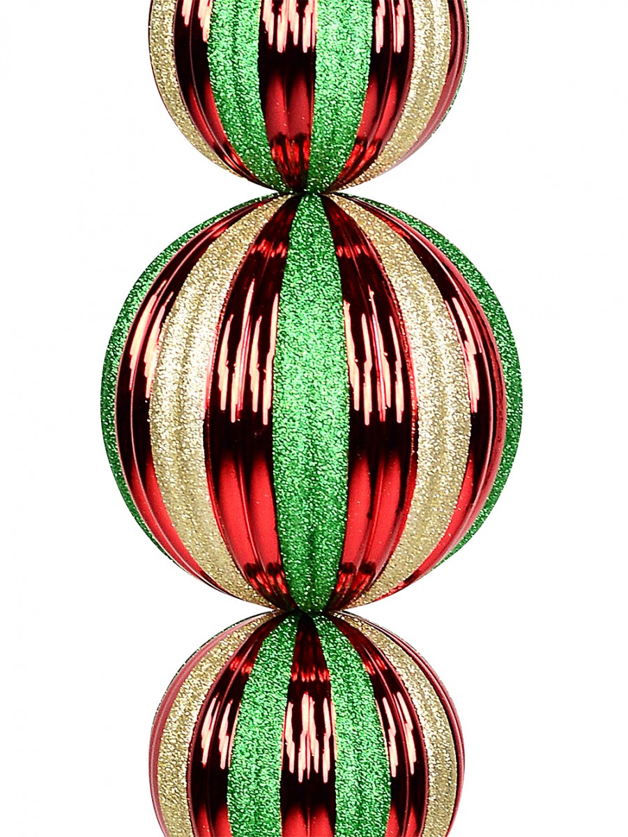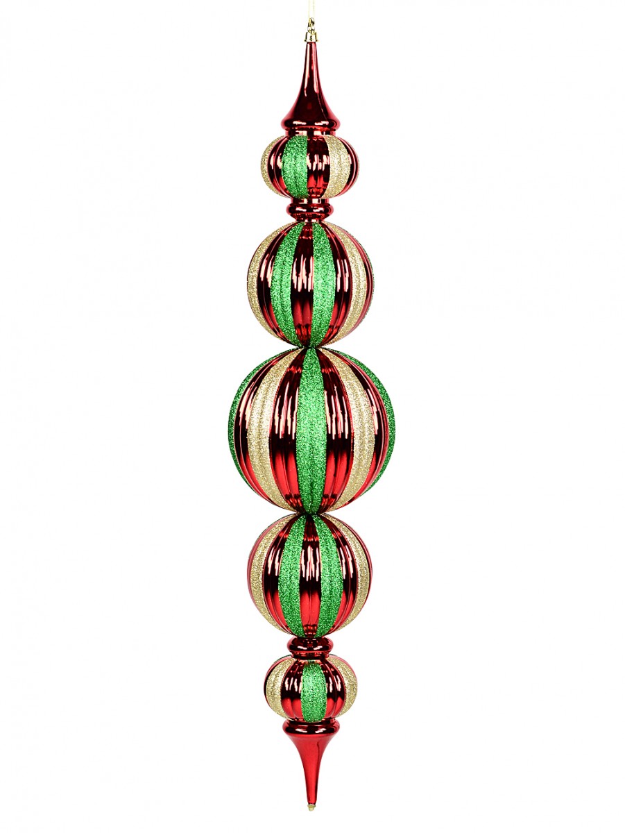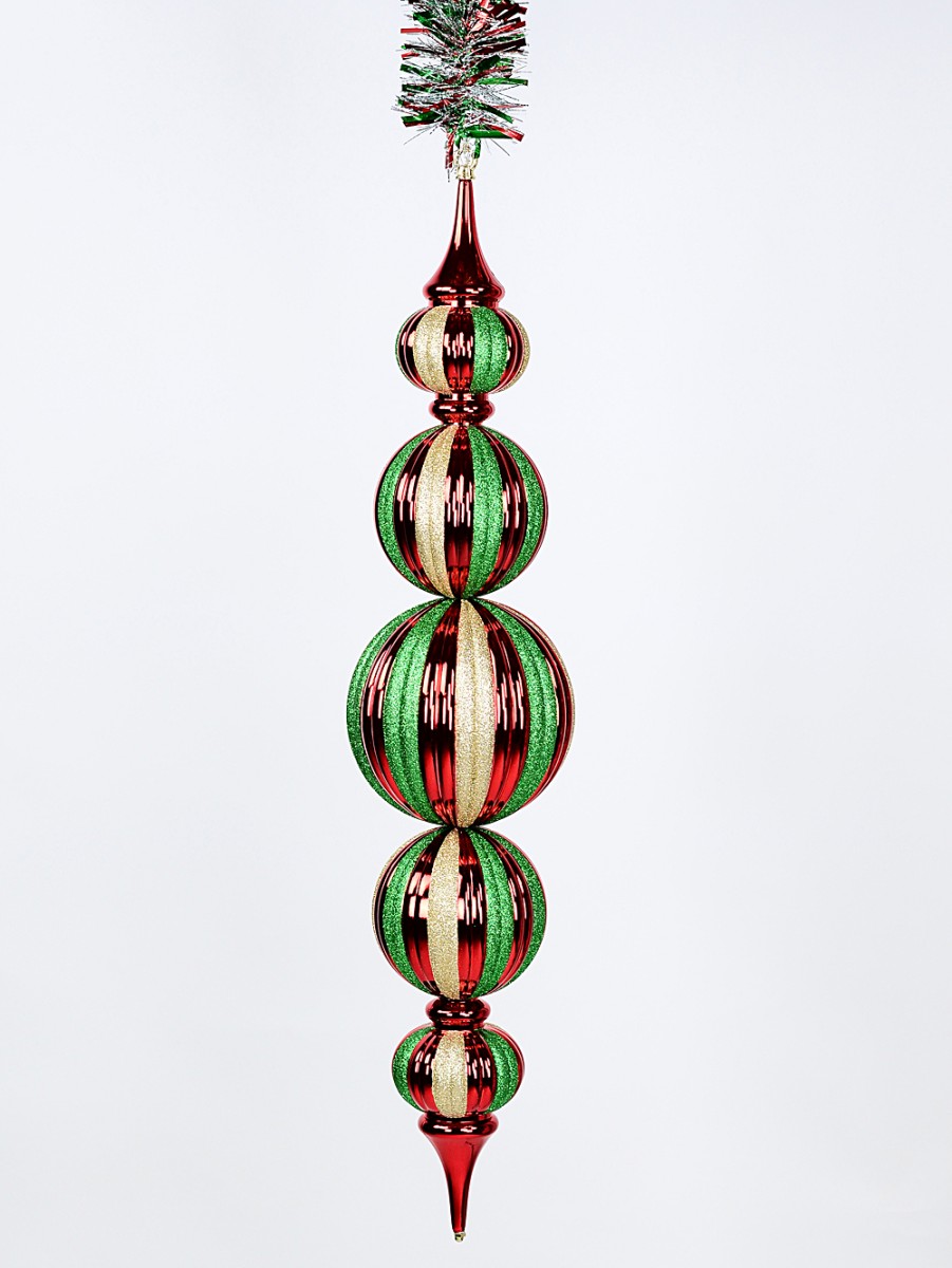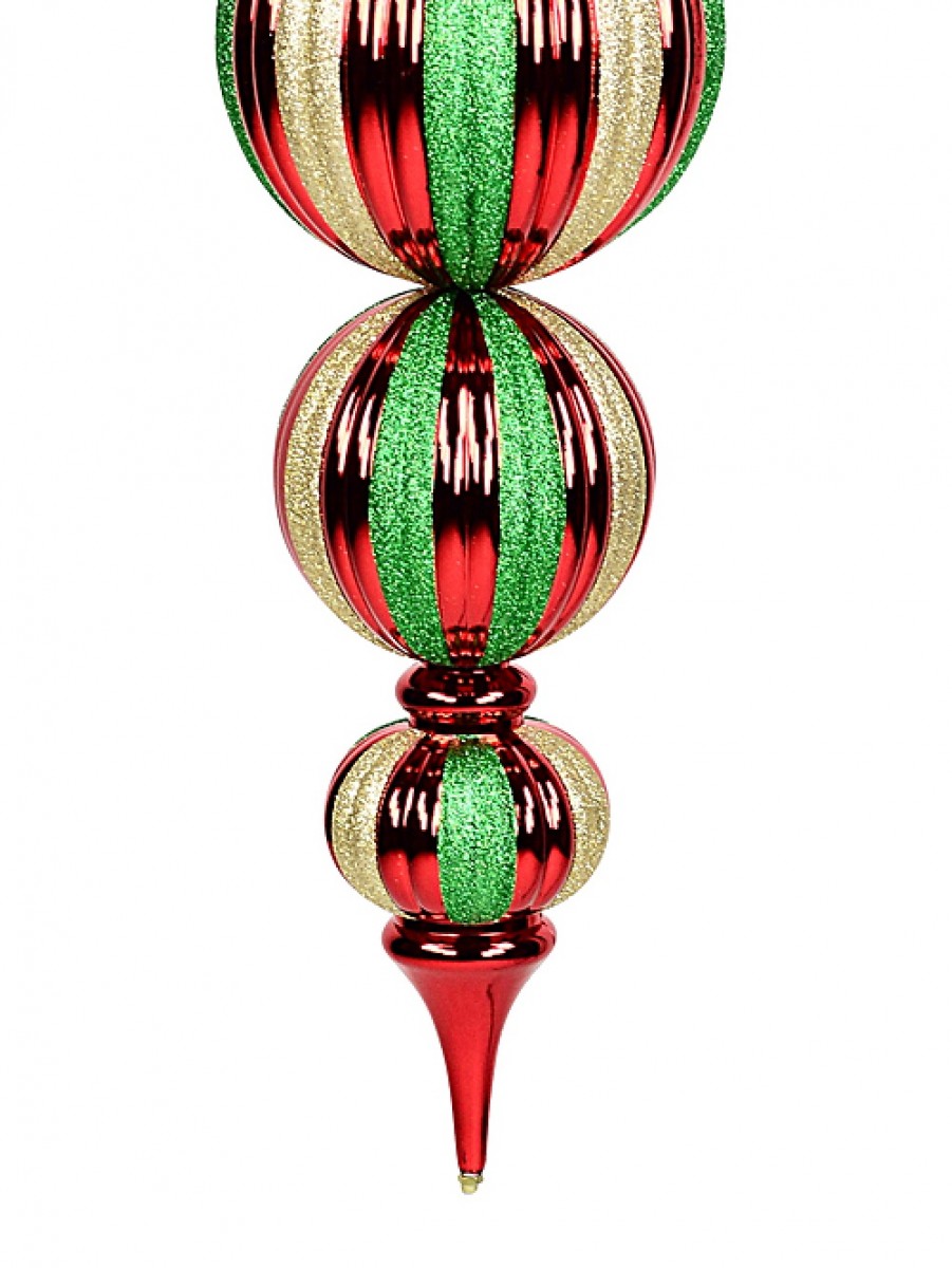 Bring a touch of grandiosity and festive spirit to your space with this Shiny Red, Green & Gold Glitter Stripes Large Finial Display Decoration. Experience the blend of tradition and glamour, sharing the holiday cheer in a visually stunning way. Its striking colours and intricate design make it an essential piece, destined to be cherished and admired year after year.