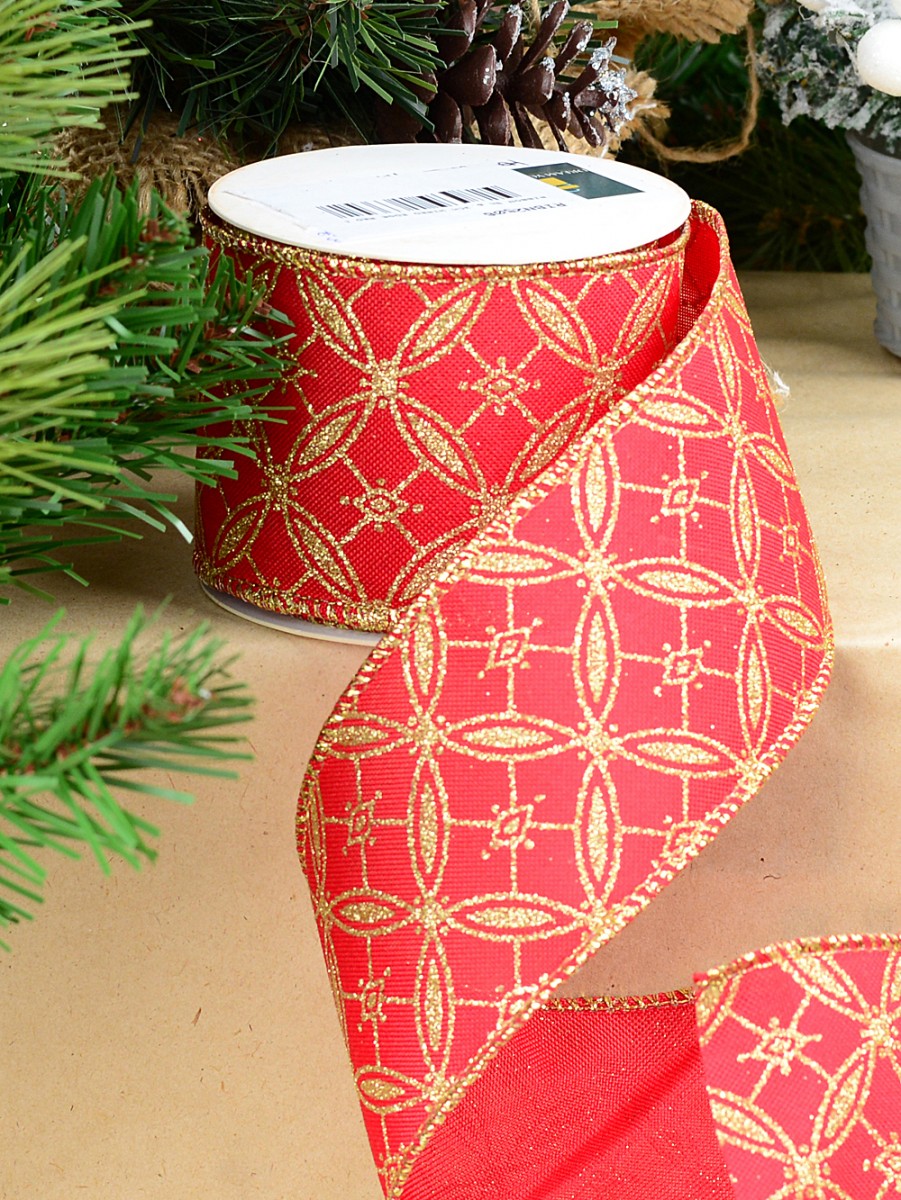The circles and squares are picked out in gold glitter - oh, it's so Christmassy - and we love how the clear wire edges make all those fancy shapes so much easier to do. The trim can be shaped into swooping curls or puffy bows (they hold really well) and even teamed with classic gold baubles. The bright red organza is so pretty, but please bear in mind: the design is one-sided, so only one side shows those amazing circles on squares details.