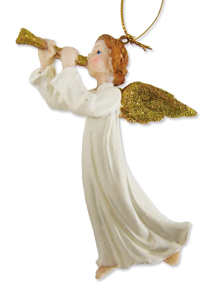This Angel Playing Harp hanging ornament is the perfect choice for your quest for traditional yet fascinating yuletide accessories. This heavenly and celestial symbol is eye catching and could perfectly blend with other holiday accent. It could also embellish Christmas trees and can be hanged indoors or outdoors. If you want a more versatility, this hanging ornamental piece is the ideal gift giving choice for a unique and heart-warming result. The lovely and cute hanging angel is crafted from durable and high value materials. It shows off the traditional angel look with the very serene child-like face. This ornamental piece is clad in white full length robe with his bare feet visible. The angel looks like he is floating in the air for a more heavenly finish. To complete the fascinating feature is the lovely golden harp the angelic host holds in his arms. It has the halo design which also serves a hanging function.