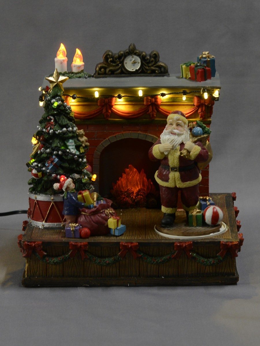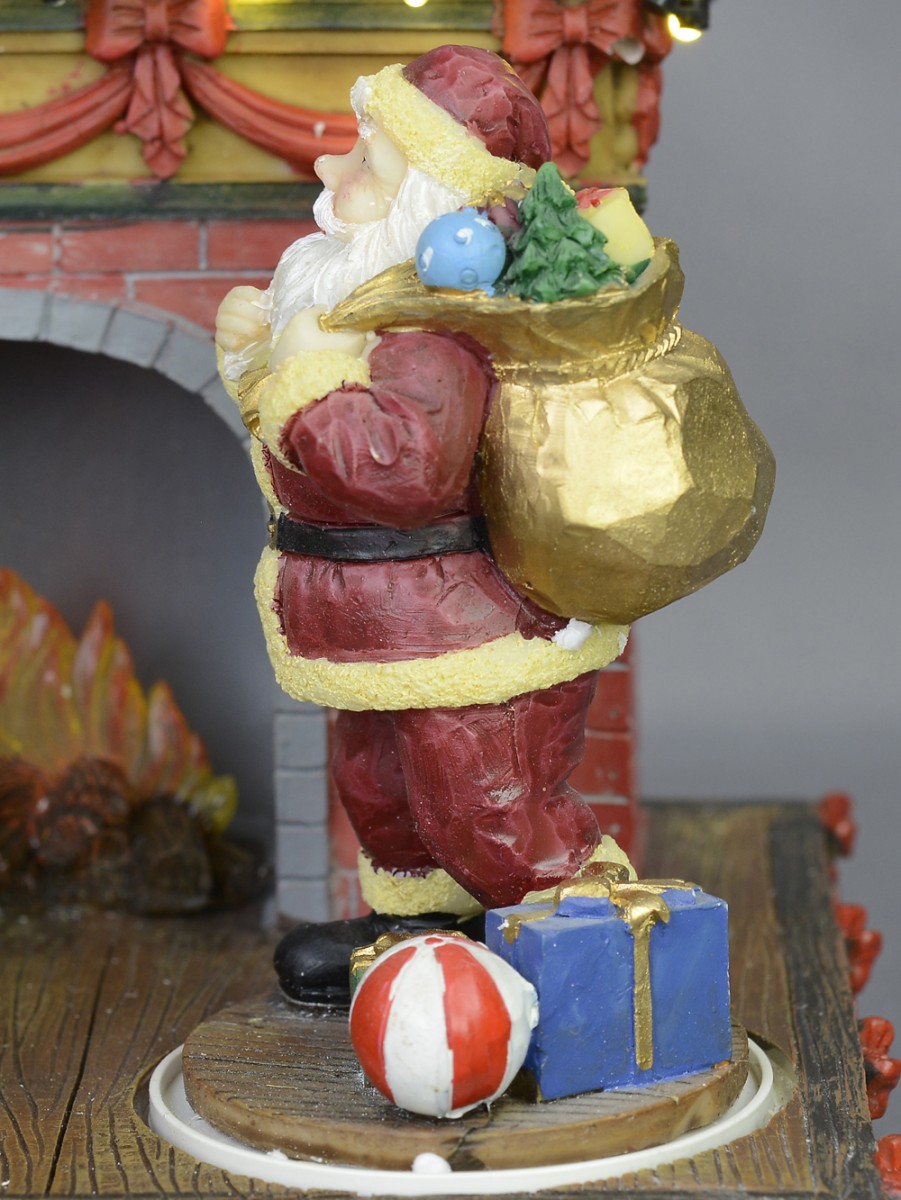 Animated & Illuminated Santa By The Fireplace Scene - 20cm