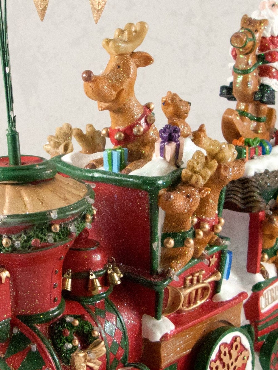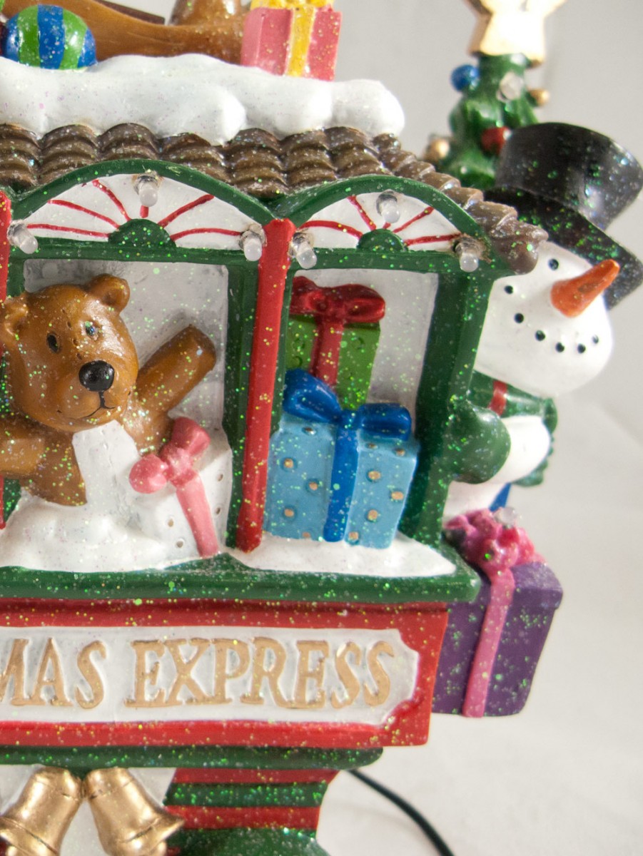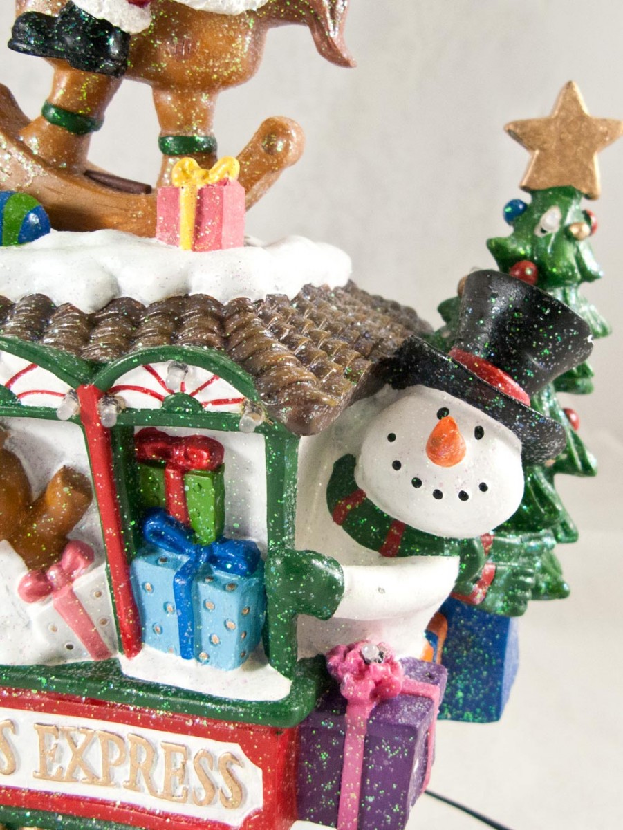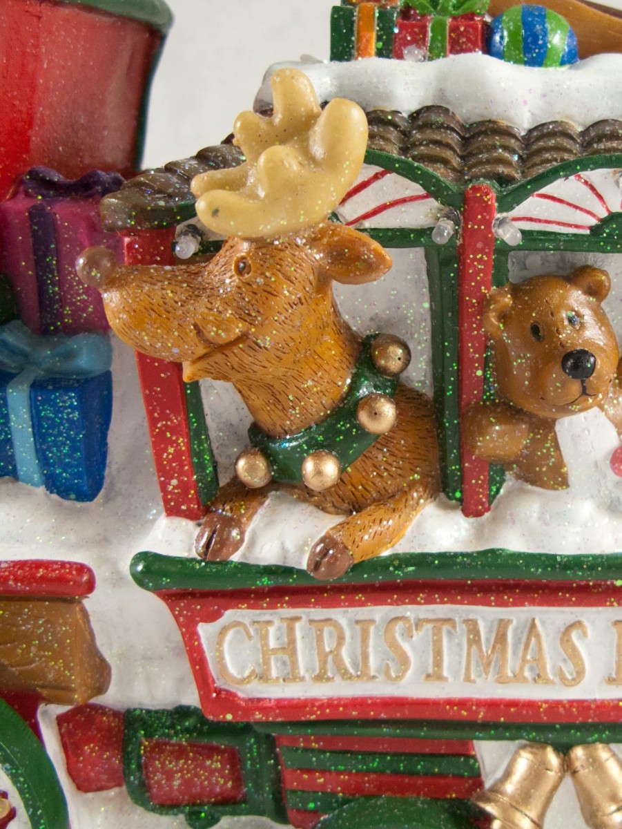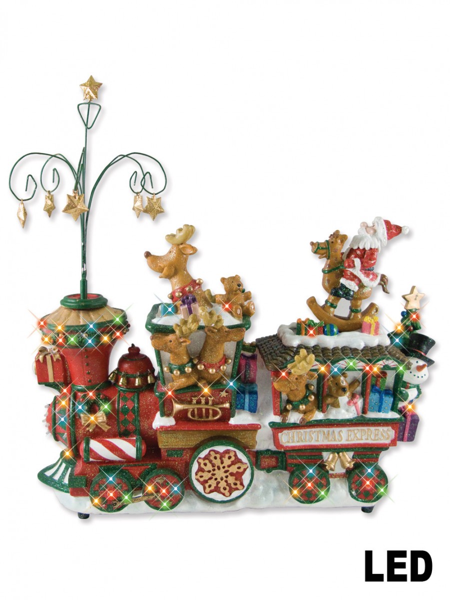 You think you need an extra exciting and amazing holiday boost? Nothing beats the most eccentric and new yuletide pieces for the holiday decorating. This Animated Led Resin Christmas Express is the ideal ornament for this season! This head turning piece is sure to capture eyes and hearts for the season's celebration. It is perfect for homes, offices and any venues that need an aesthetic lift! The exciting and merry ornamental decoration is made from resilient materials for longer use. This animated piece showcases the resin Christmas train fully embellished with different symbols of Christmas. It has Led lights at the wheels and body. Reindeers and gifts are scattered anywhere. There are other wacky designs such as Santa on a rocking horse on top of the Christmas Express. The Snowman and Christmas tree with Led lights join the gang. The front of the train is designed with the hanging and rotating stars.