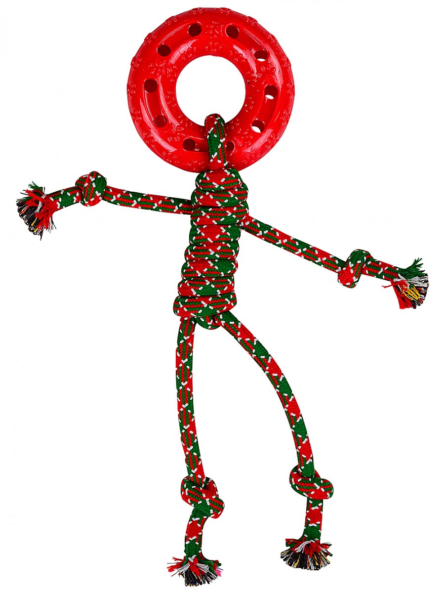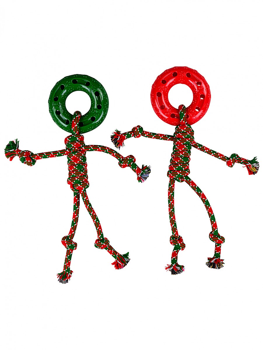 The brilliant thing is, with a mix of festive colours and a stickman body shape, you can get a random variant with either a red or green ring head (28cm x 35mm x 42cm) - just to keep the excitement going. Honestly, we think that's half the fun. We like to picture this rope figure standing proud amongst your other Christmas decor while your dog bounds around, nose twitching with curiosity, wondering if it's for them. And really, is there anything more magical than watching your pup's eyes light up as they tug and play - especially with all the family about and laughter in the air? We even think these toys look good just strewn about the lounge with string lights and holly garlands.
