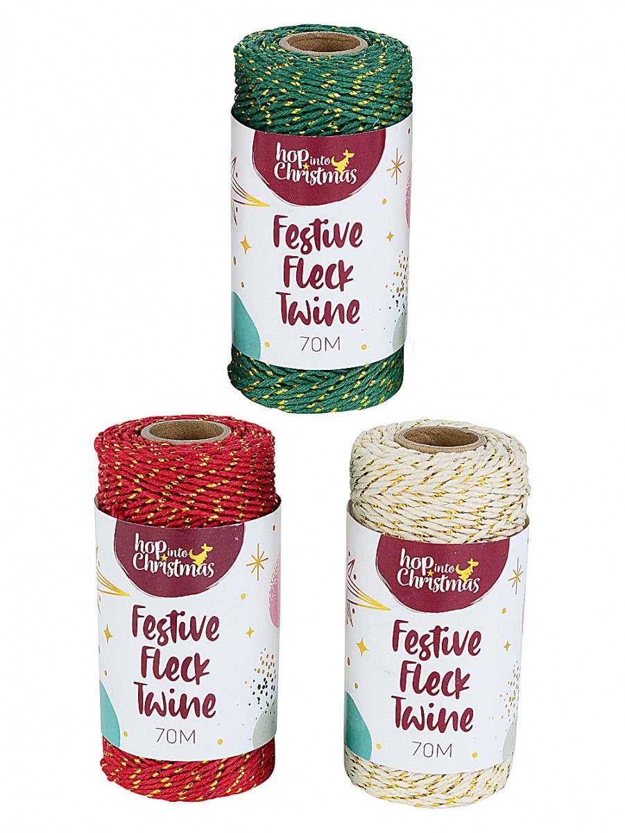 Honestly, there's something about a little shimmer at Christmas time that turns the ordinary into something really magical. Our Assorted 70m Red, Green or White Twine Rope With Gold Tinsel Flecks is such a nice way to add a bit of sparkle everywhere you look - presents, garlands, wreaths or even Christmas tree decorations. This festive twine is 70 metres long and comes in three enchanting colours (red, green or white), all threaded with gold tinsel flecks for that perfect holiday glimmer. We get it, choosing between red, green and white can be tough. And we can't pre-select which one you'll get for single purchases. But honestly, they're all fabulous! If you're purchasing two or more reels we'll do our best to send a mix of designs depending on what's available. Each reel measures 50mm x 50mm x 95mm and weighs only 100g � it's amazing how much fun and festivity something so small can bring into your home!