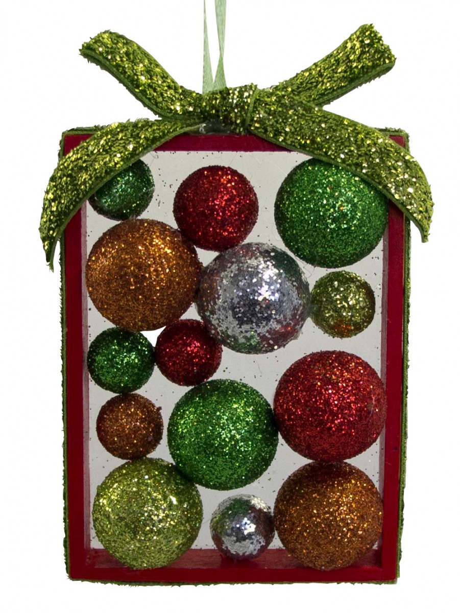 Baubles over the ages and time have become a classical symbol of Christmas decoration and have been synonymous to Santa Clause�s appearance as well as a Christmas tree hanging ornament also. Also, Children love to play with these Christmas baubles. Without these baubles, your Christmas party decoration looks like somewhat incomplete. This simple and yet aesthetically valuable Christmas present set of baubles comes in various glittery and dazzling colours of red, green, silver, gold and lime colours. The unique things about these baubles are they are multi - coloured 3D ones that come in both small and large sizes, and their average dimension is 65cm x 20 cm x 11 cm. Another striking feature is its packaging that comes in a gift frame accompanied with Perspex back cover and green bow.