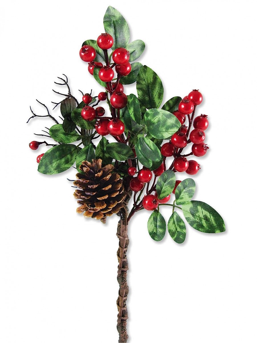 Enjoy decorating any place or venues with the perfect yuletide symbols and decorative today. This Pick - Berry Spray With Pine Cone, Leaves & Assorted Decorations - 24cm is the ideal Christmas ornament which could spruce up venues from offices, commercial establishments, homes and so much more. This ornamental piece is enticing, jovial and festive resembling the all-time ambiance and look of the season. The Christmas pick is composed of an assortment of Christmas symbols starting with the deep red berry ornament. The item is intricately crafted to showcase a close and realistic berry look. It is combined with other lovely decorations such as spray with leaves in variants of green palette. This head turning and versatile decorative is also complete with the dark brown pine cone and twigs. The bunch is measured 24cm in size. It is a perfect cluster of decoration used to boost Christmas trees or displayed with other yuletide accents and accessories.