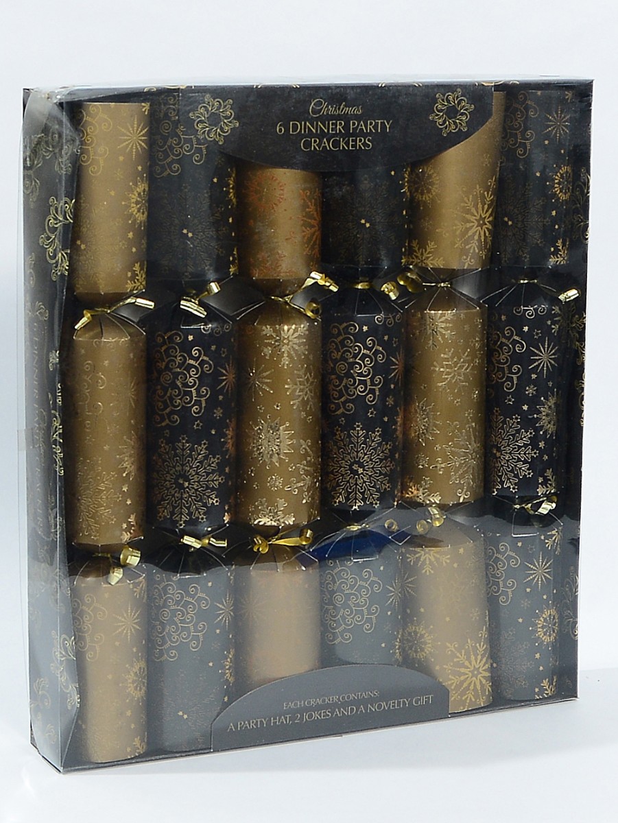 The Black & Gold Snowflakes & Stars Christmas Cracker Bon Bon offers you the perfect opportunity of celebrating this year's Xmas festivity in grand style and in a fun filled way. You also get to go to every Christmas party with crackers that would crack open every guest, family, and colleagues in attendance when they read the funny jokes contained within each of these half a dozen Christmas crackers.
