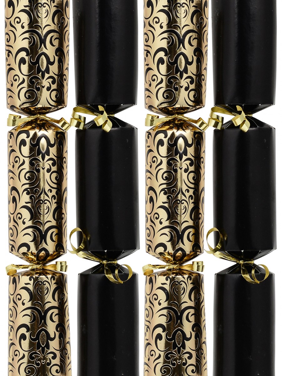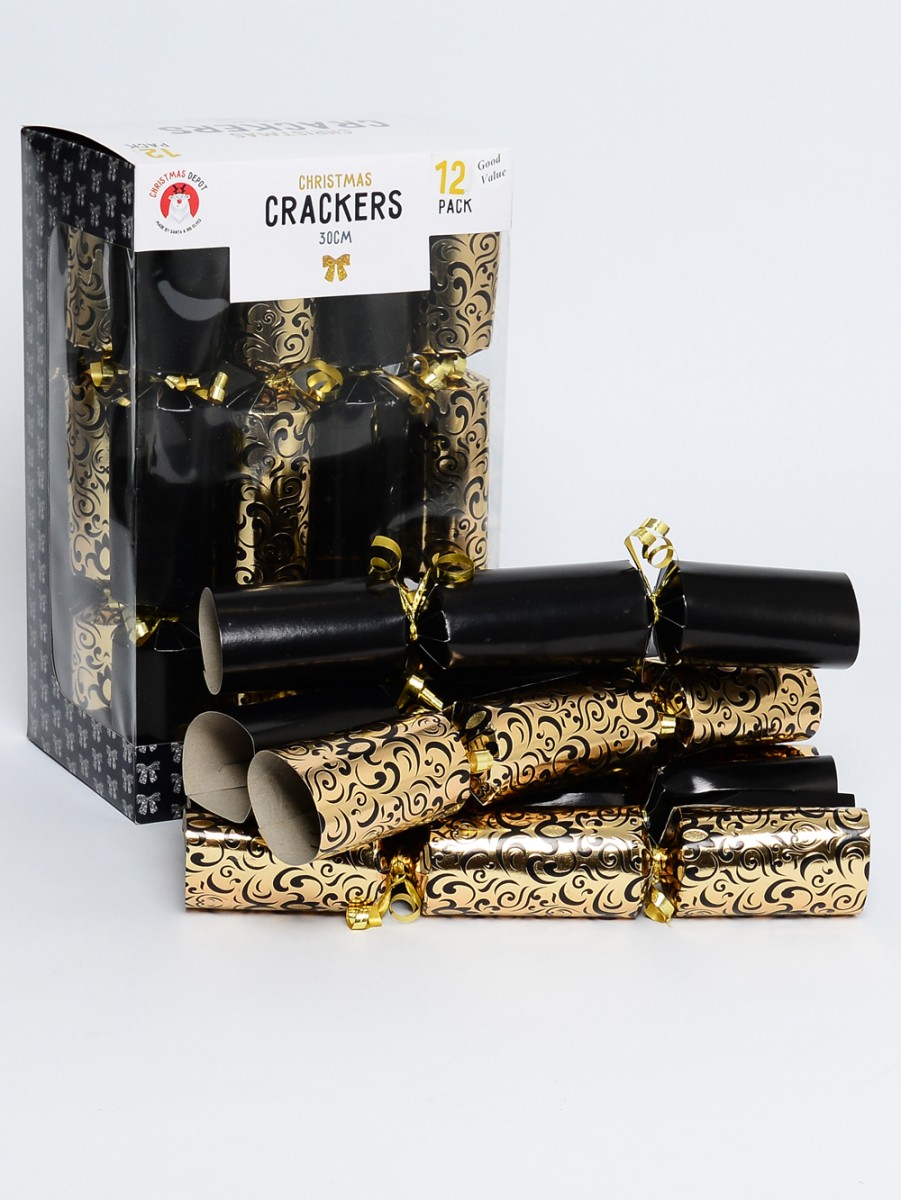 These Christmas crackers are perfect for adding a touch of traditional festive charm to any setting. The black and gold design with a swirl splash pattern is enchanting and captures the essence of the holiday spirit. One of the highlights of these Christmas crackers is the fact that they contain toys and trinkets designed to last beyond Christmas day. This makes them enjoyable for both kids and adults, providing entertainment and delight throughout the holiday season. Opt for our collection as a tree topper, creating a stunning scene that is sure to impress. Additionally, they make a perfect decoration for any Christmas table, adding an extra touch of elegance and charm to your holiday celebrations.