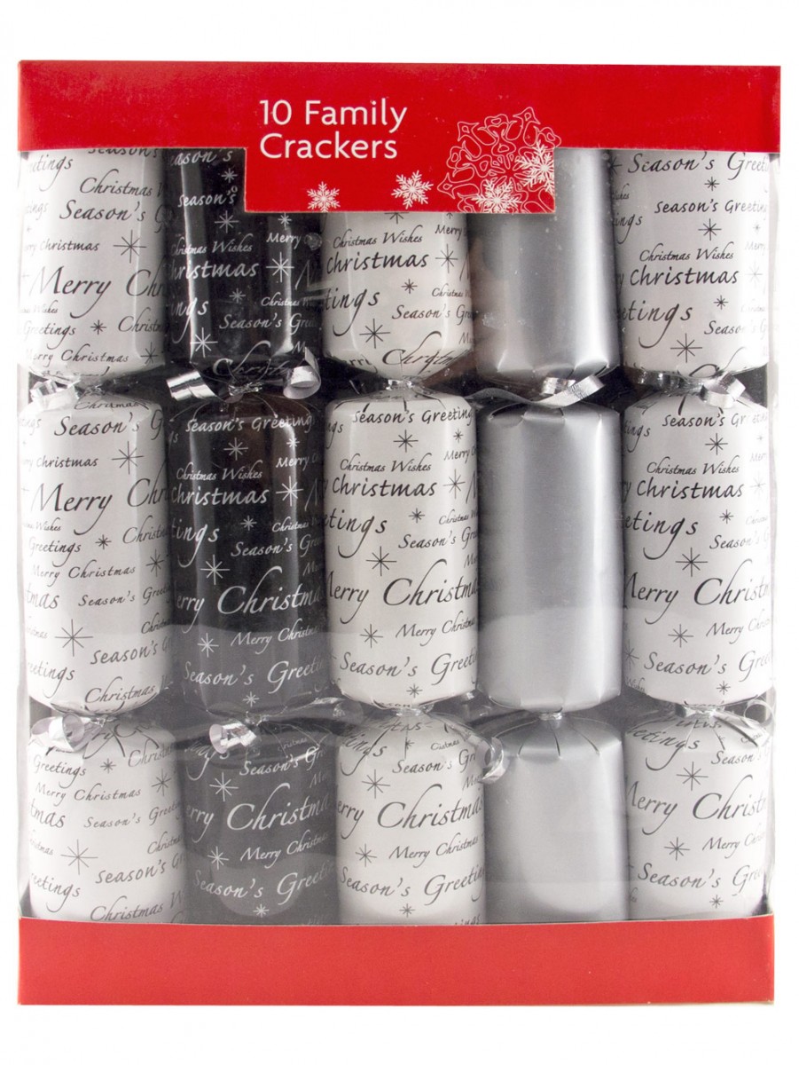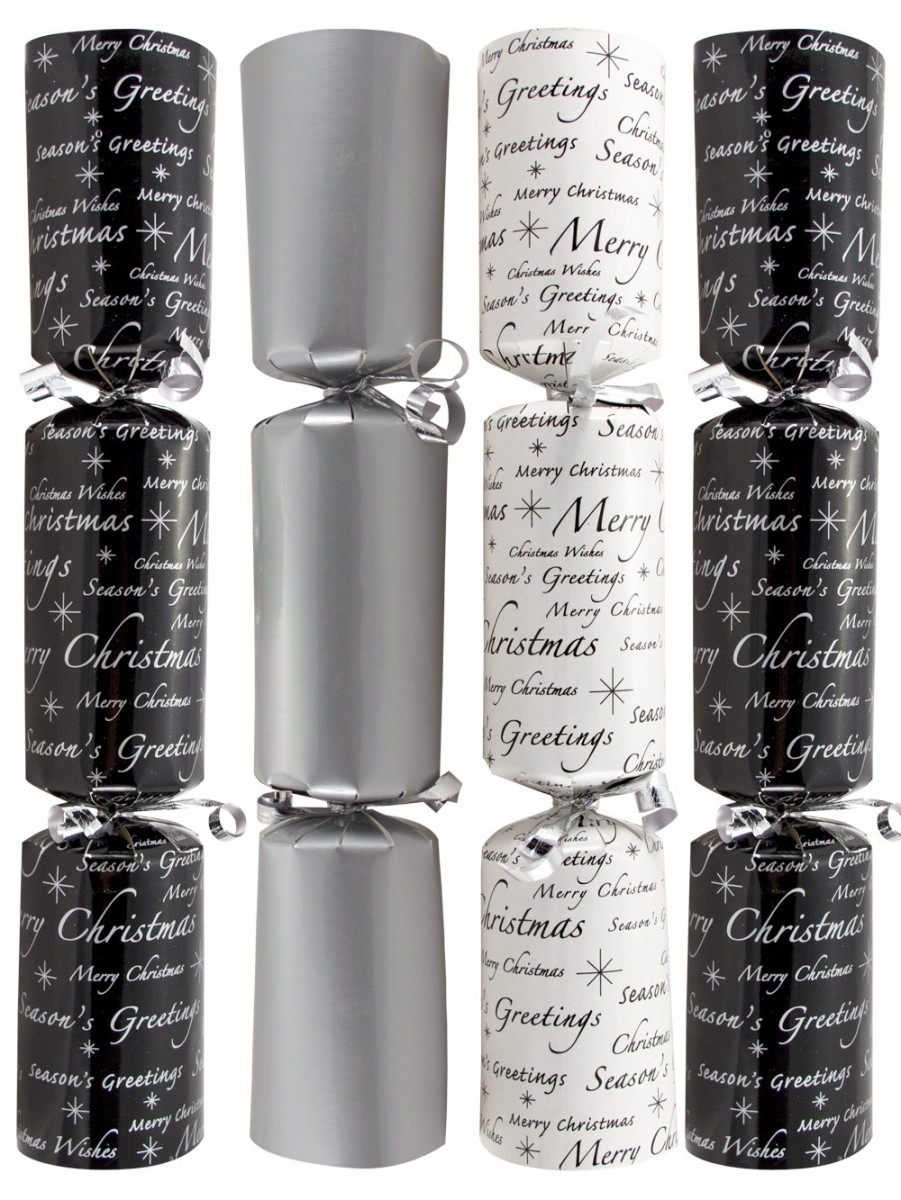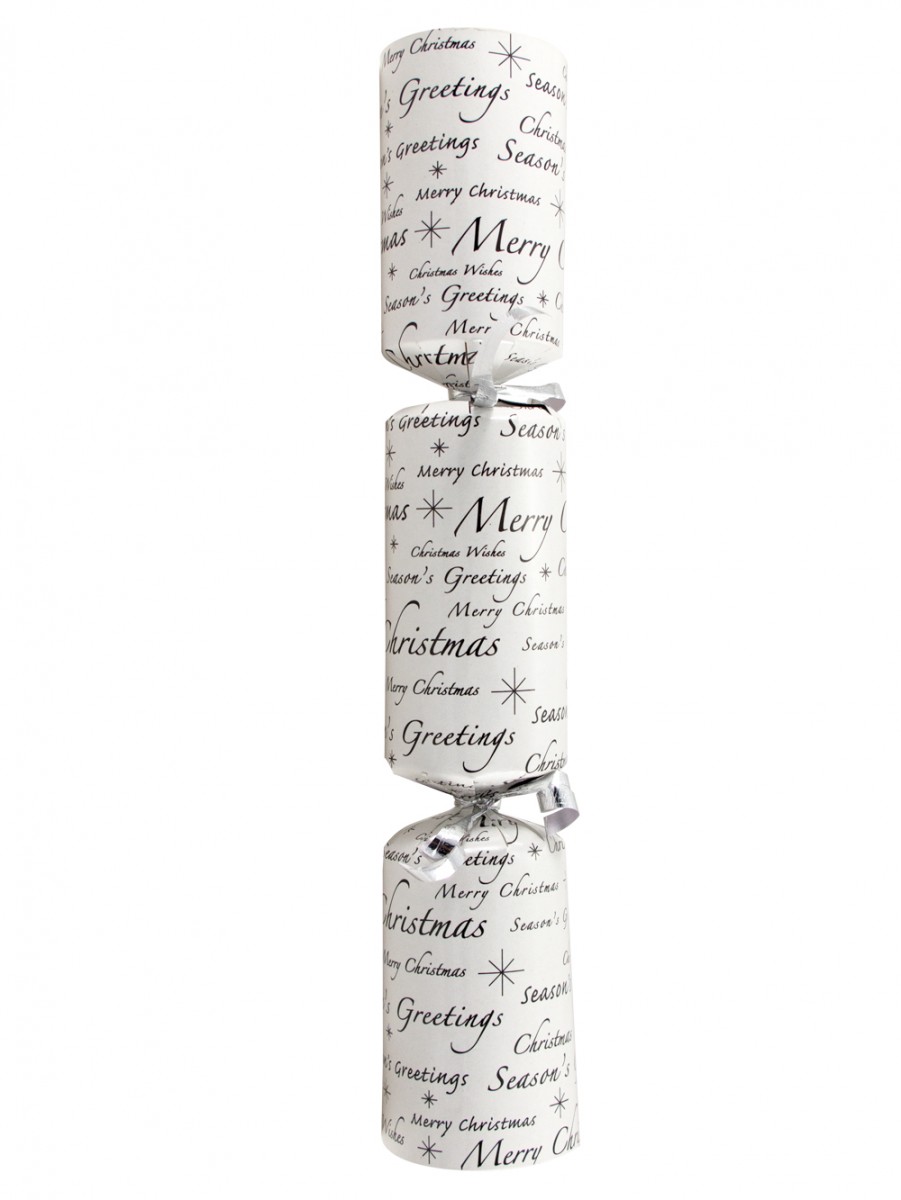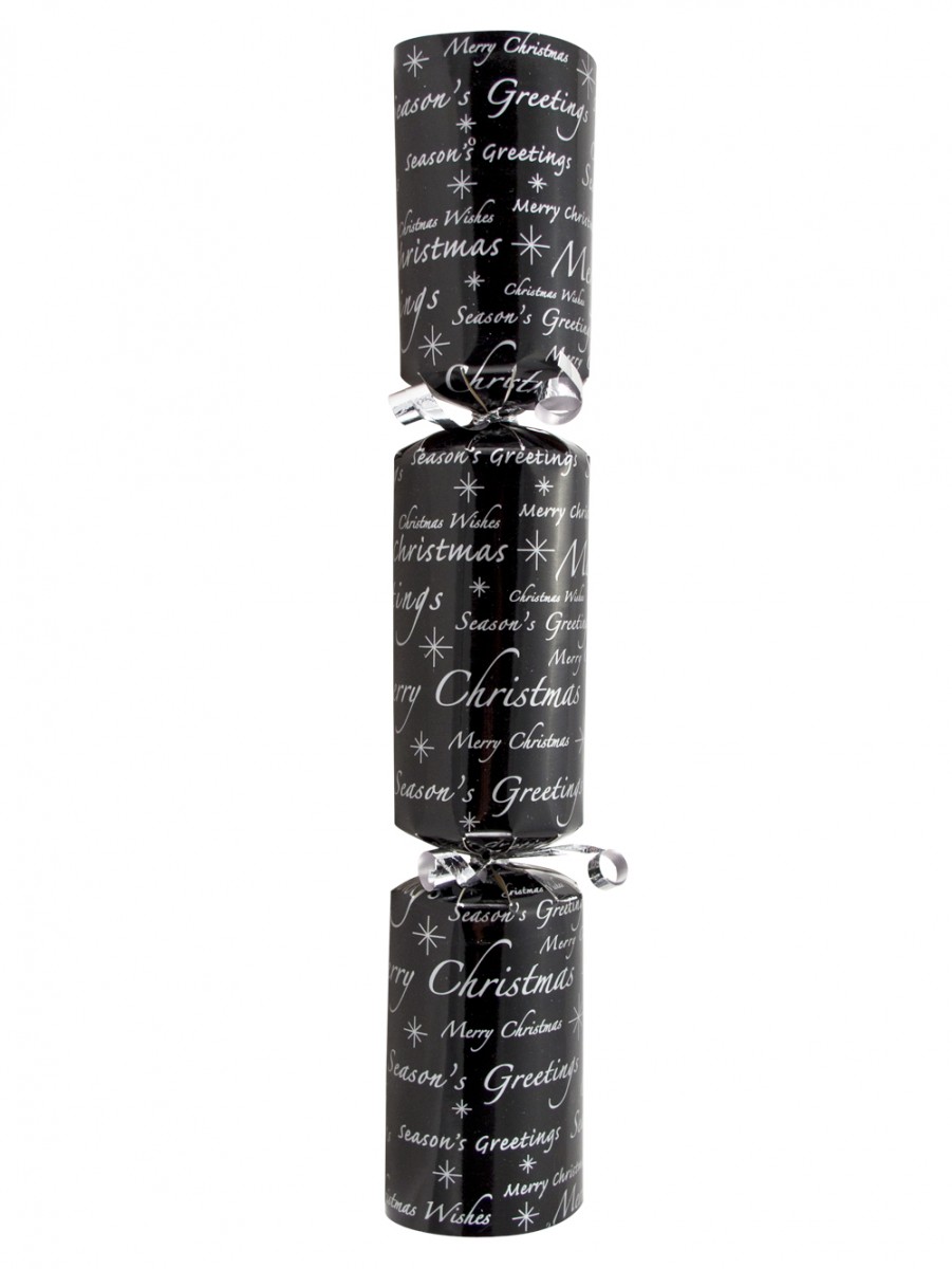 Want a way to add an extra dose of excitement and mystery to your Christmas party? Bon Bons are a great way to do just that. They're a Christmas tradition that's been around for over 150 years and it's no surprise considering how much fun they are! These black, silver and white Bon Bons bring a touch of elegance to your holiday gathering whether you're hosting a dinner or holding a Christmas party. Each package contains ten Christmas crackers in three different varieties and all are tied with a beautiful silver ribbon on either end. Two of the varieties have a "Merry Christmas" and "Seasons Greetings" message written in elegant script while a third is solid silver. Their elegant detailing and color allow them to be ideal for any formal or casual gathering. Be sure to check out the rest of the Christmas Warehouse site for many more varieties of Bon Bons!