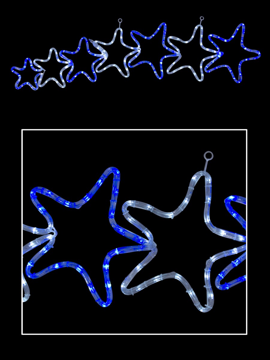 When we wish upon a star, it's said that our dreams come true. If one of your dreams is to have the best Christmas light display in the neighborhood, try adding our stunning Blue and Cool White LED Star Display to your array of decorations. Create a magical presentation by using several of these attractive chains in trees, on fences, and along your roofline to create a stunning nighttime picture that will stop passersby in their tracks.
