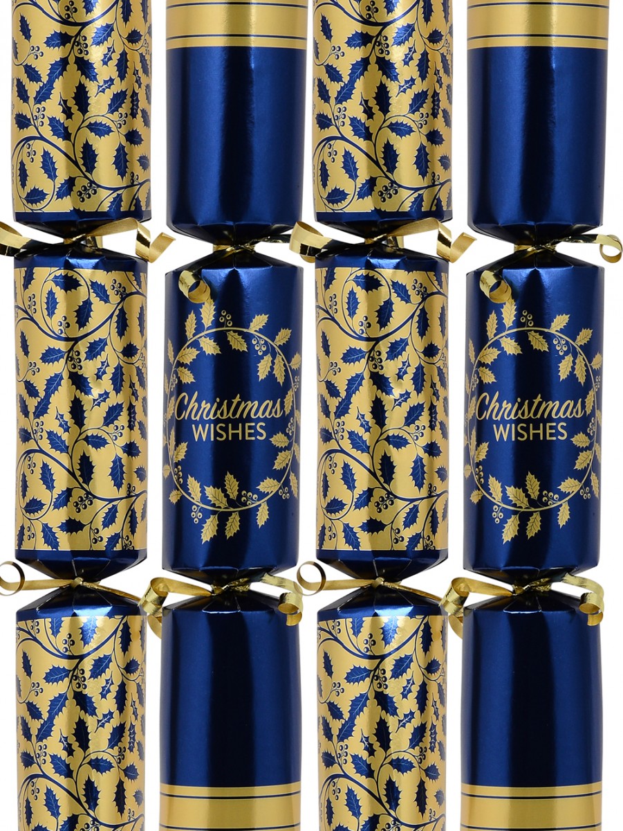 Indulge in the tradition of Christmas bonbons with our - Blue & Gold With Christmas Wishes Holly Vine & Wreath Bon Bons. Let their charming design, vibrant colours, and festive spirit infuse your home with the magic of the season.