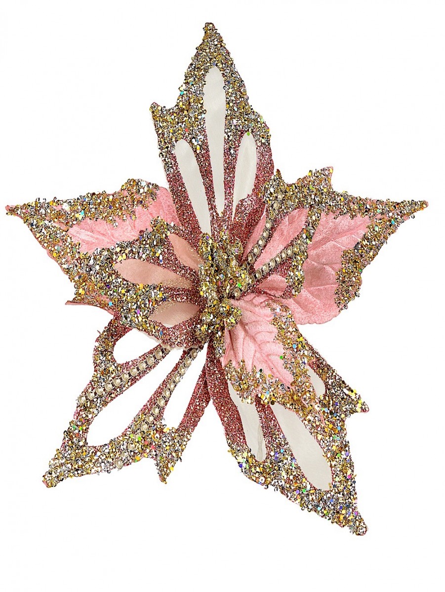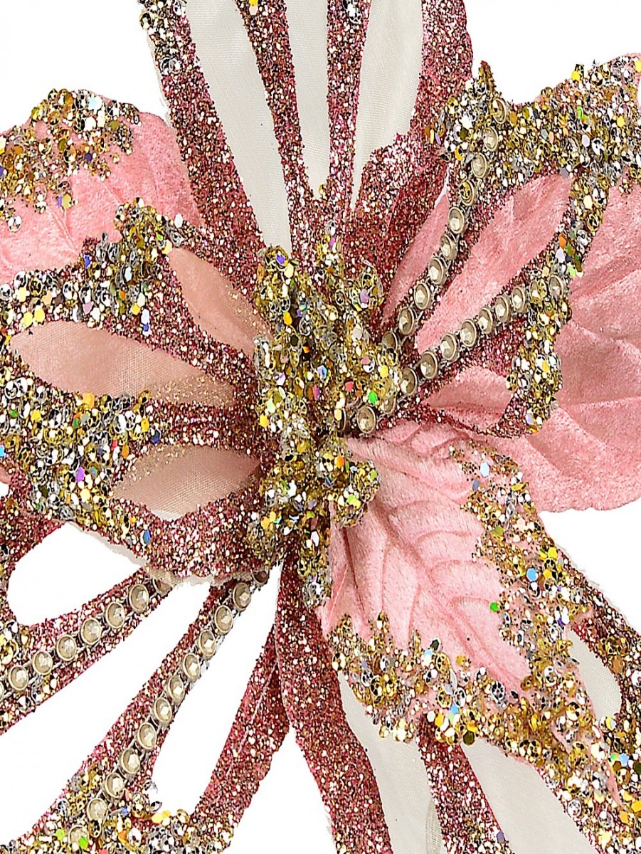 An attractive floral accessory, this festive blush pink Poinsettia pick brings wonderful colour to any display and is ideal for the holidays or any other special occasion that calls for a little bling! Use it to complement the floral arrangement at a winter wedding, Christmas party or bridal shower, or you can simply use it to brighten up a room in your home.