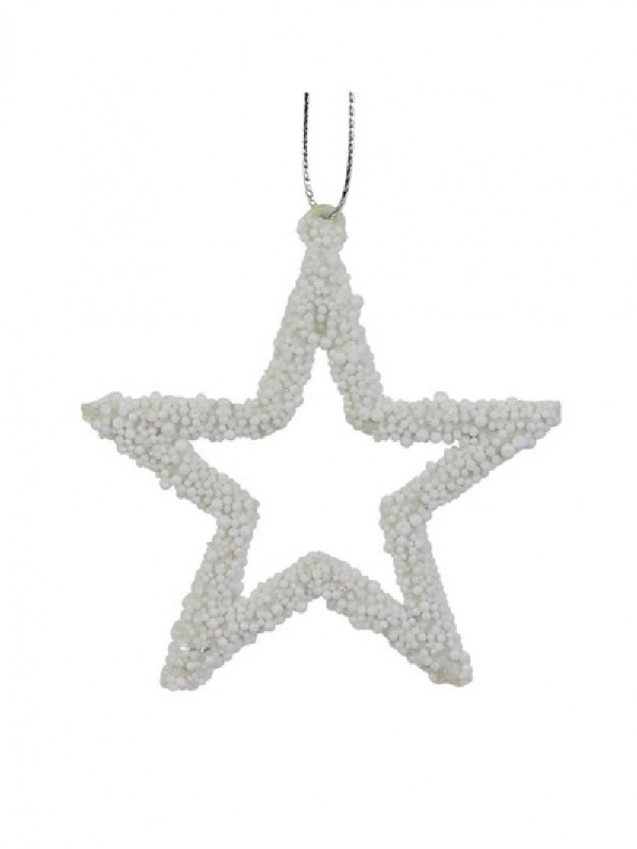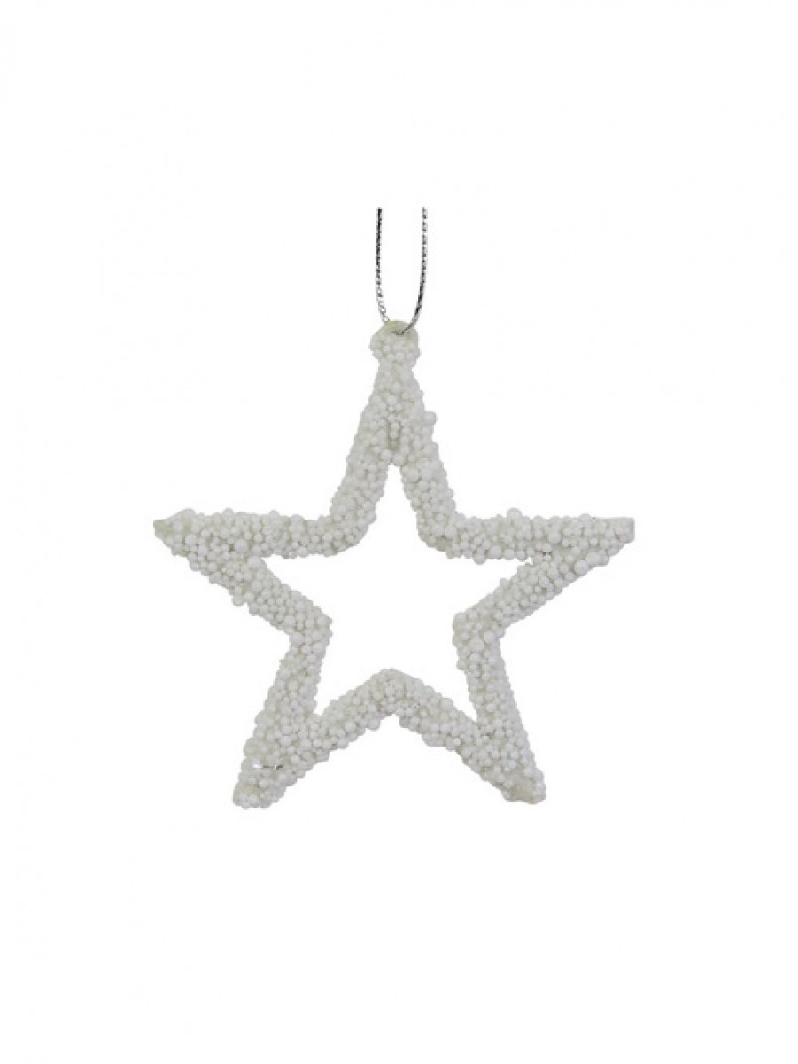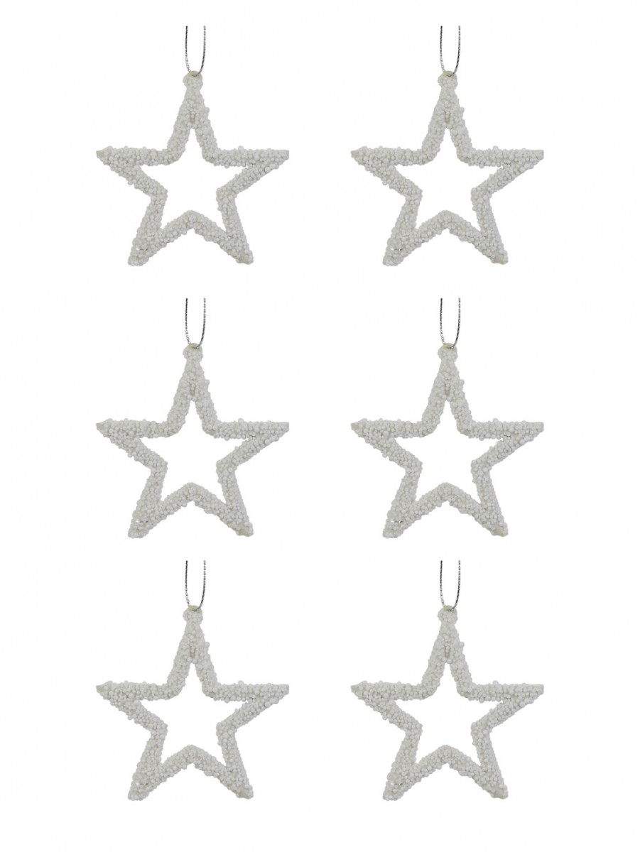 Increase the beauty of your Christmas tree by decorating it with this pack of six White Star Hanging Ornaments and then just sit back to enjoy the elegance it will add as well as all of the compliments that it will garner this coming holiday season! This decorative ornament star has white foam stars encrusted in a white bubble-like trim adding a magical snow-like appearance.