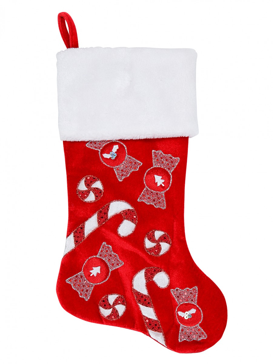 Candy Canes & Lollies Red Velvet With White Cuff Christmas Stocking make Christmas morning even more magical for the whole family. Think of it as the perfect finishing touch. Use this collection to add a vintage charm to your holiday mantel. What's more? It compliments any home decor style.