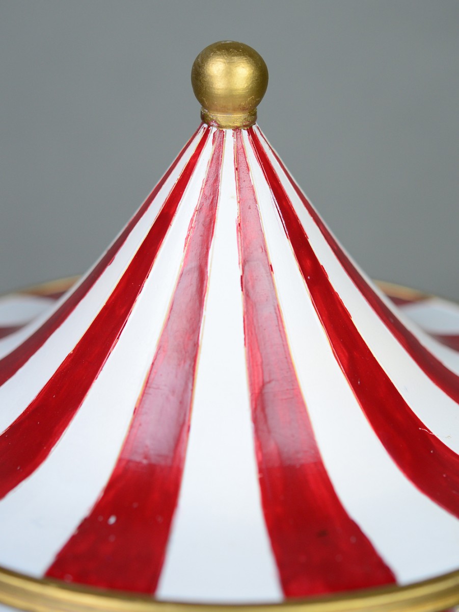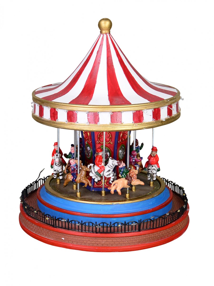 The centrepiece of your Christmas carnival display - will surely be this traditional red & white top merry-go-round! The ride has figures on every animal and moves in a circular motion to music - adding to the festival theme. Warm white LED lights are strung carefully around the surrounding fence, and again along the bottom ring of the big top!