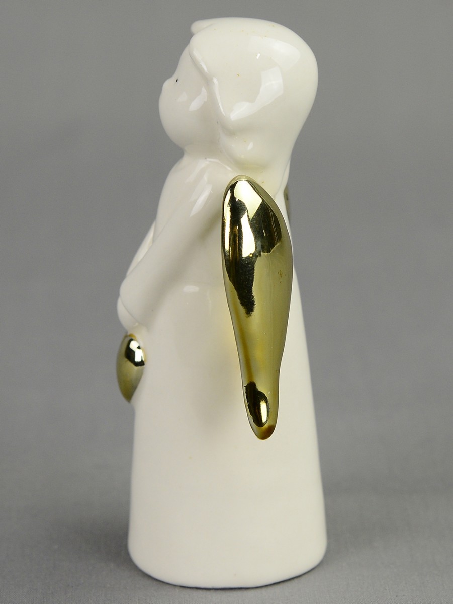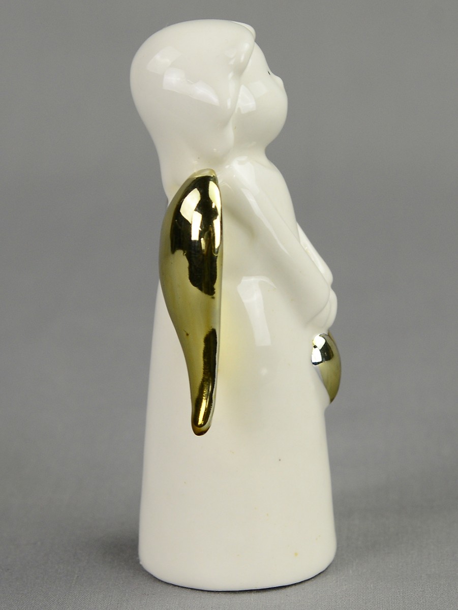 Shaped from ceramic with a stunning shiny white glaze, our White Angel holding gold heart ornament has an ethereal charm and is perfect to welcome family and friends in your home. This endearing freestanding design features an angel with gold wings holding a gold heart and is 55mm x 35mm x 10cm in dimension.