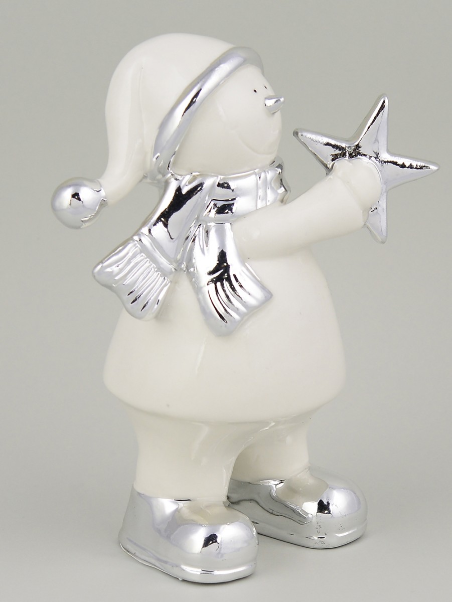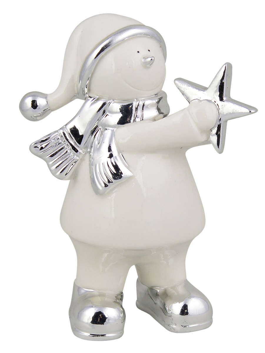 With some reindeer, faux snow, tinsel and this enchanting decoration, you can create a winter wonderland both indoors and outdoors in your garden or yard. This well-made ornament features a standing white ceramic snowman smiling wide while holding out a shiny silver star. The snowman is well dressed in clothes for the season with shiny silver muffler and boots and also a snug Santa hat with silver accents that completes the adorable look. It is sold individually and is 16cm x 6cm x 16cm in dimension. Since it ships worldwide, it is the perfect little gift to send as a Christmas keepsake.