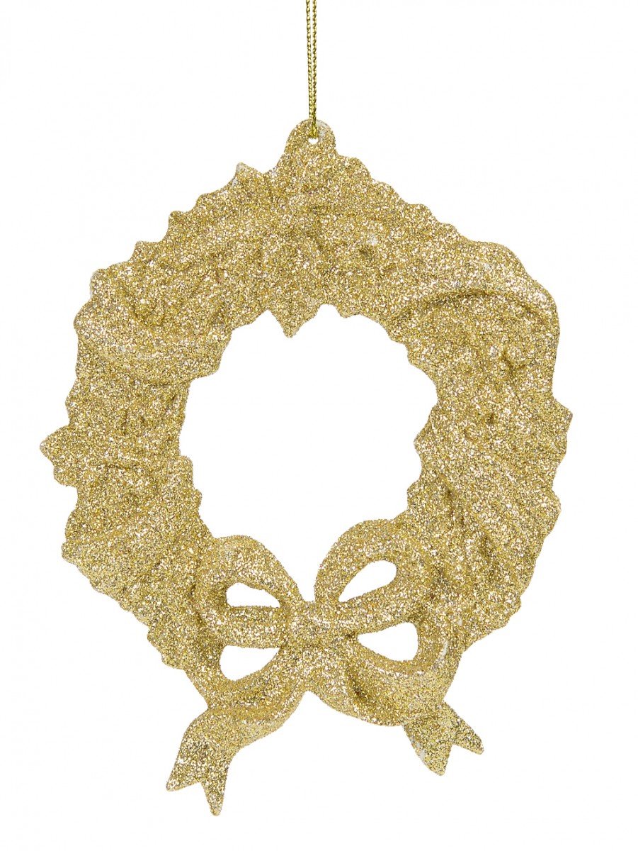 A must-have for any decor enthusiast, this champagne glitter with a bow hanging ornament is here to bedeck your Christmas tree, garland, and wreath and add a festive ambience to any Christmas setting! Embellished in champagne coloured glitter, this vibrant Christmas wreath has characteristic knobby textures and is designed with a bow at the bottom having four loops and V-shaped tails.