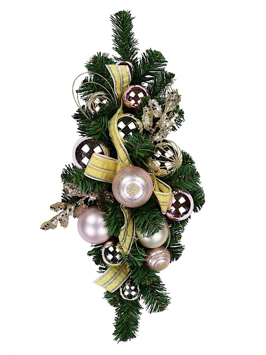 Let this champagne and pink centrepiece help you fill the surroundings of your business or home with the essence of the season! Lay it flat and adorn it with candles to create a wonderful centrepiece for the dining, kitchen or console table. Use your imagination and enjoy finding different ways to present this swag that has a number of decorative possibilities!