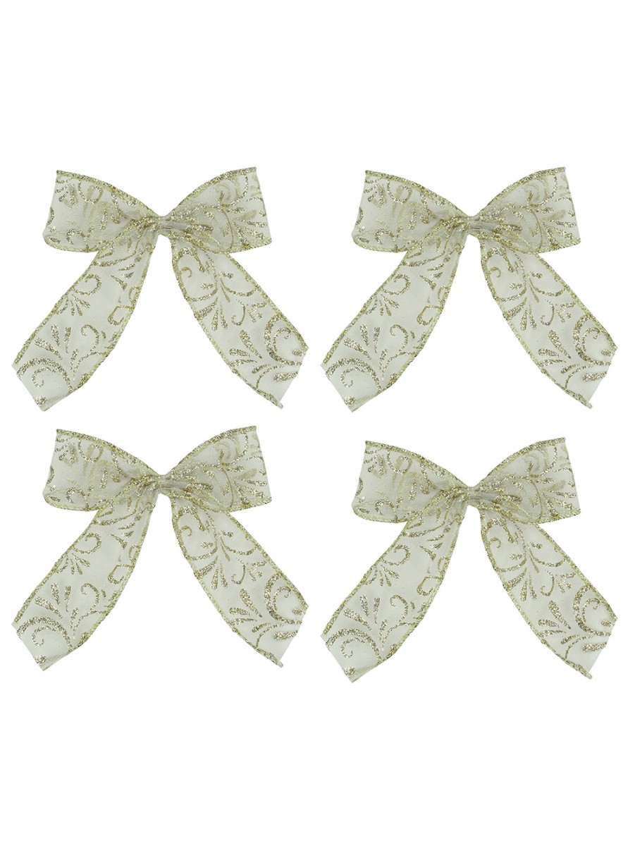 Although many opt for putting only ornaments on a Christmas tree, these Champagne With Gold Glitter Pattern Sheer Fabric Bows are just as beautiful. They're easy to put on the tree when you're decorating it, and when you're taking everything down at the end of the season, you could store them safely in practically any container.
