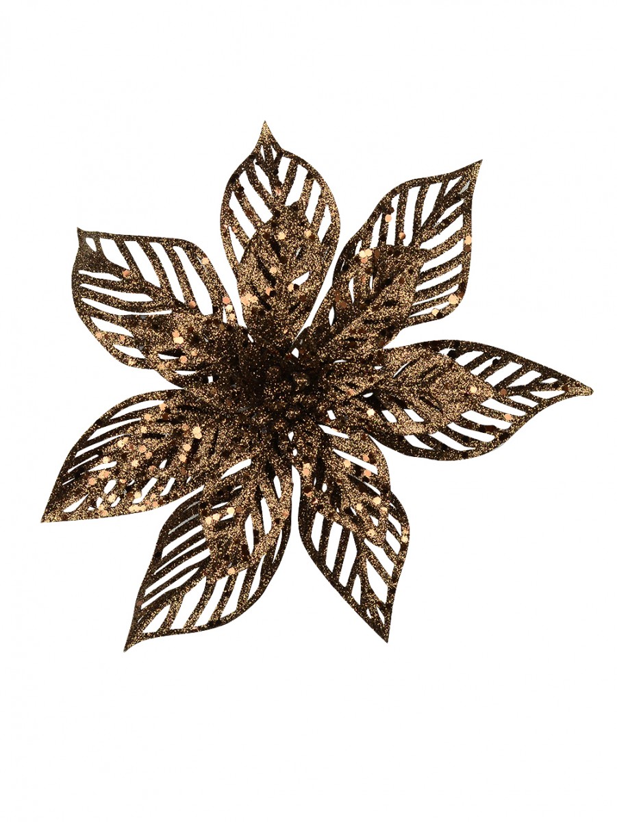 Beautifully crafted, our Chocolate Glittered Poinsettia Pick takes a magically whimsical approach to the famous shrus flower. Its rich chocolate colour displays monochromatic beauty as filigree layered petals are doused entirely with glitter and embellished with shiny sequins that complete its look.