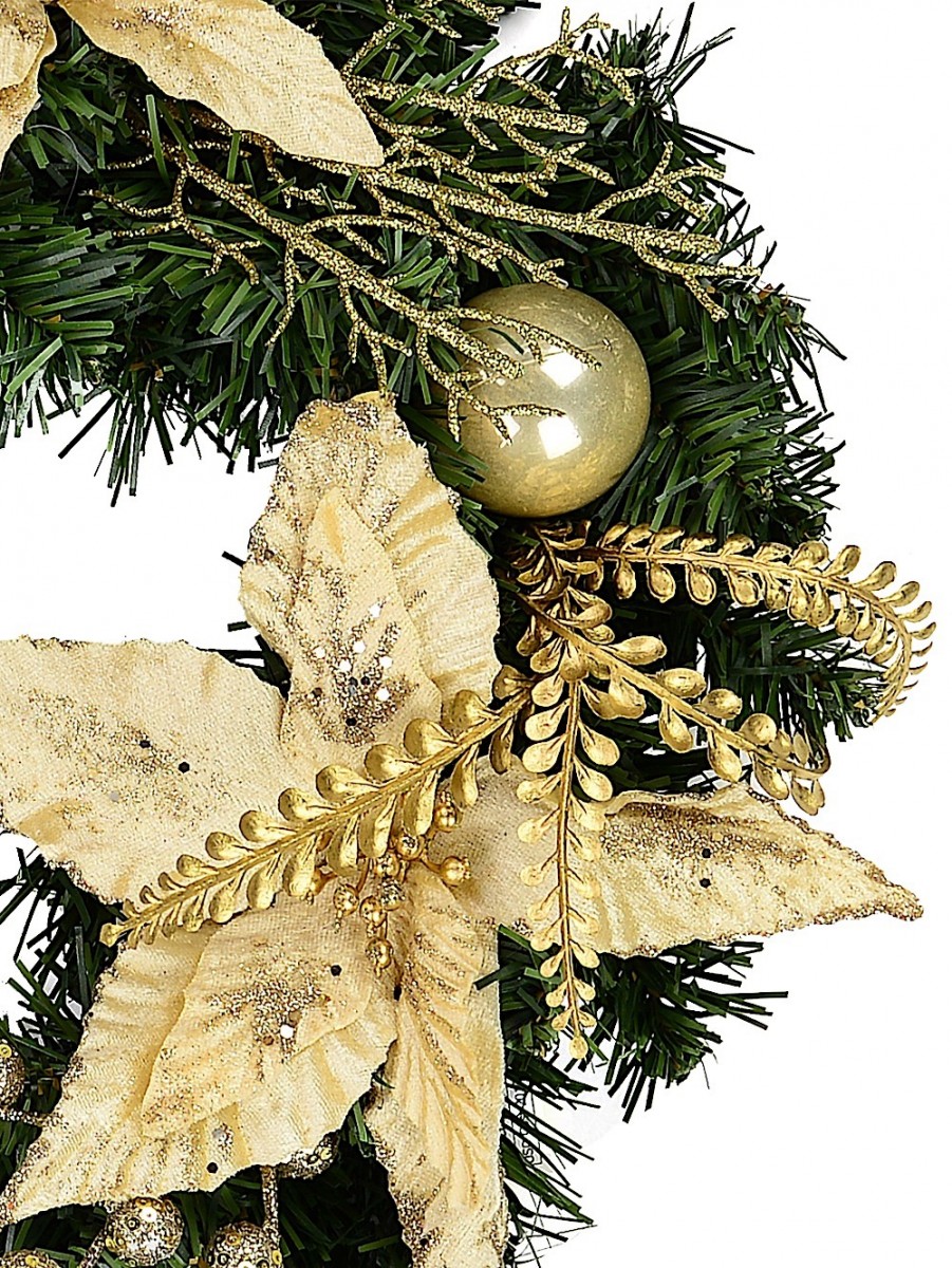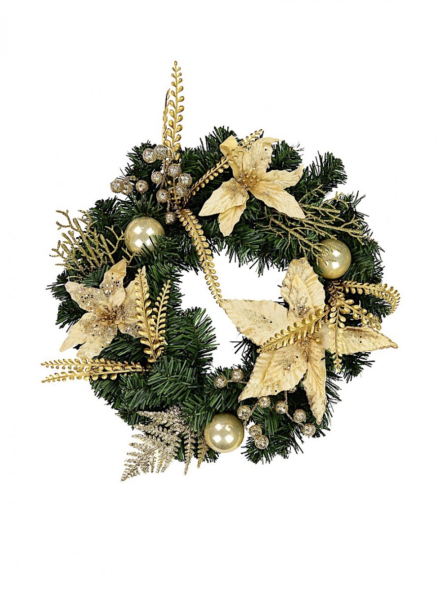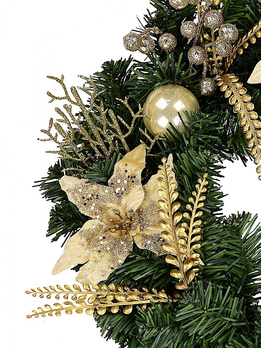 Nice and full, this decorated wreath has a lovely colour combination of gold and champagne and comes ready to be a part of your Christmas displays, or to be given as a unique gift! Let it embellish your surroundings during the holidays, Christmas party, winter wedding, New Year and other fanciful events!