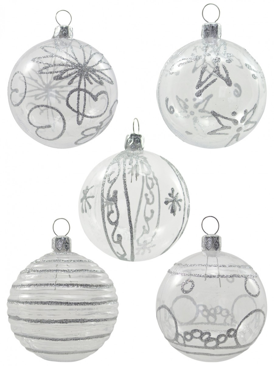 Baubles may be the most beloved type of Christmas decorations. Why is this? It is hard to attach yourself to tinsel or garland, which often has to be replaced at the start of every holiday season. Baubles, on the other hand, if wrapped up carefully, can be reused year after year, allowing your family to form memories around them. When looking to create a show-stopping Christmas display with ornaments that can be kept for many holidays to come, you can't go wrong with these delightful, clear silver glitter baubles. These baubles offer decorators a cohesive yet unique accent to complement their other Christmas decorations. While all the globes are of clear glass, the set features five distinctive designs - two baubles with dragonflies, two that are striped, two with flowers, two with circles, and a lone bauble decorated with a swirl pattern. While these ornaments may not be very colourful on their own, when hung beside coloured lights, the effect is simply breathtaking. From trees to garland to wreaths, there are plenty of ways to bring these ornaments into your holiday decor. These clear baubles with silver glitter accents are 60mm in size. Delivered in a gigantic pack of nine, they are the perfect way to accentuate your existing Christmas decorations while adding a touch of sparkle! These ornaments can also be used on their own to great effect. No matter how you use them, you are sure to receive many complements on your stylish decor.