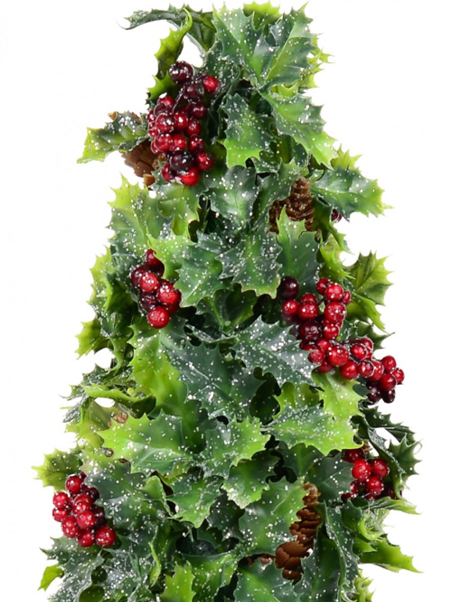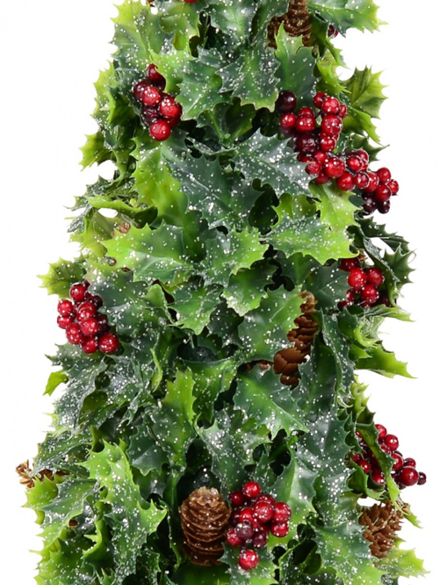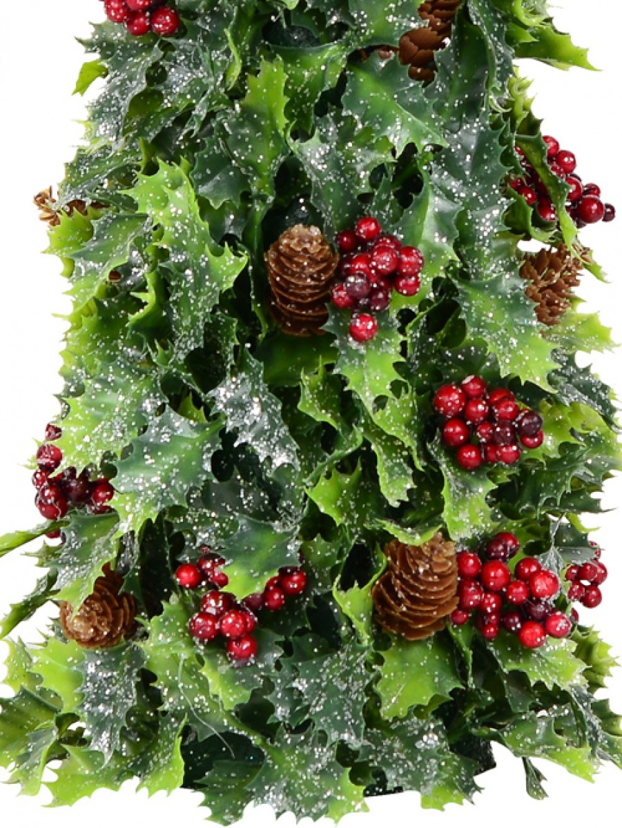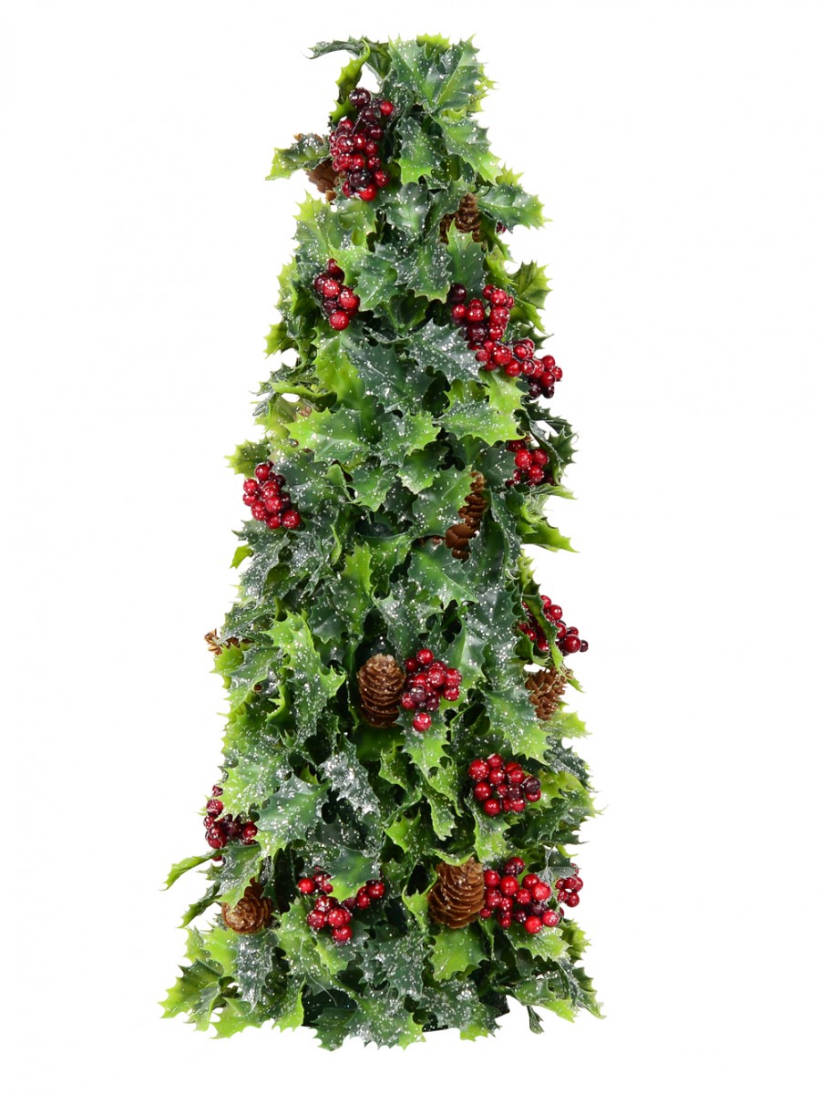 Conical Holly Leaf, Berry & Pine Cone Christmas Tree Table Top Ornament - 40cm