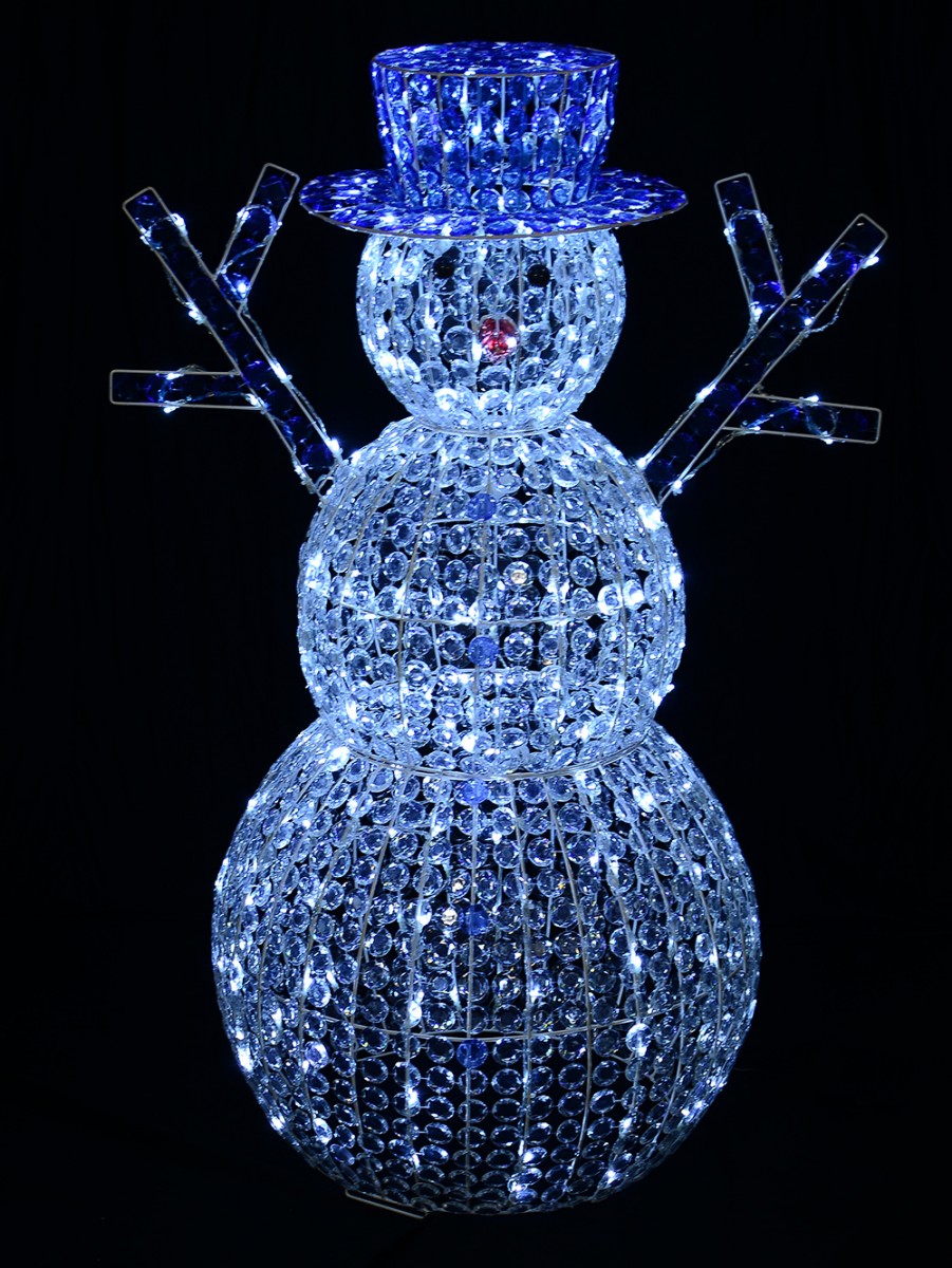 Cool White LED Crystal 3D Winter Snowman With Top Hat - 1.2m