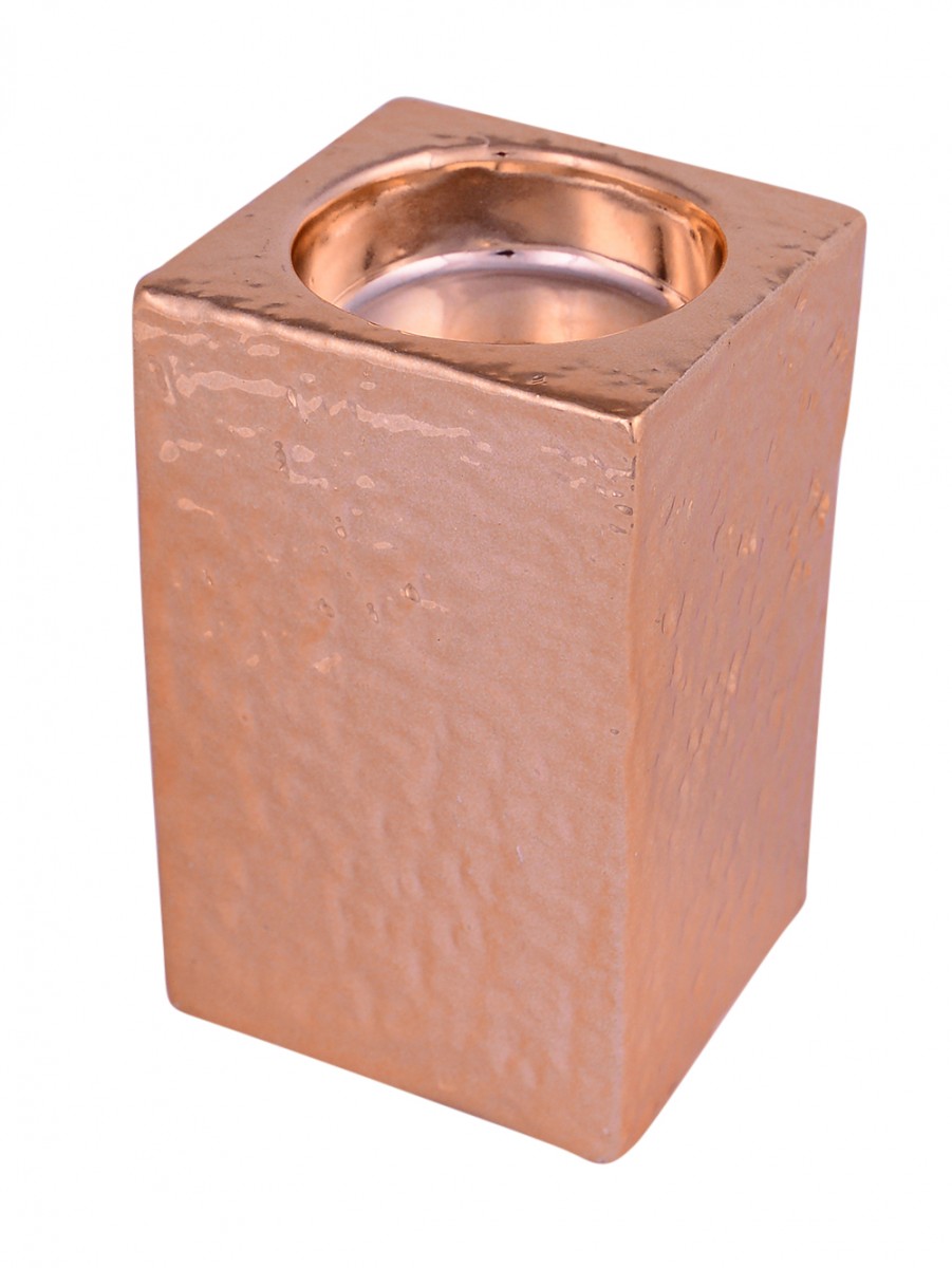 This Copper finish ceramic tall Candle/Tea light holder ornament has a trendy rustic look and is a great way to display tea light candles around the home. Made from ceramic with a copper glossy finish that has a nice textured look, this candle holder is 65mm x 65mm x 10cm in dimension and is sold individually.