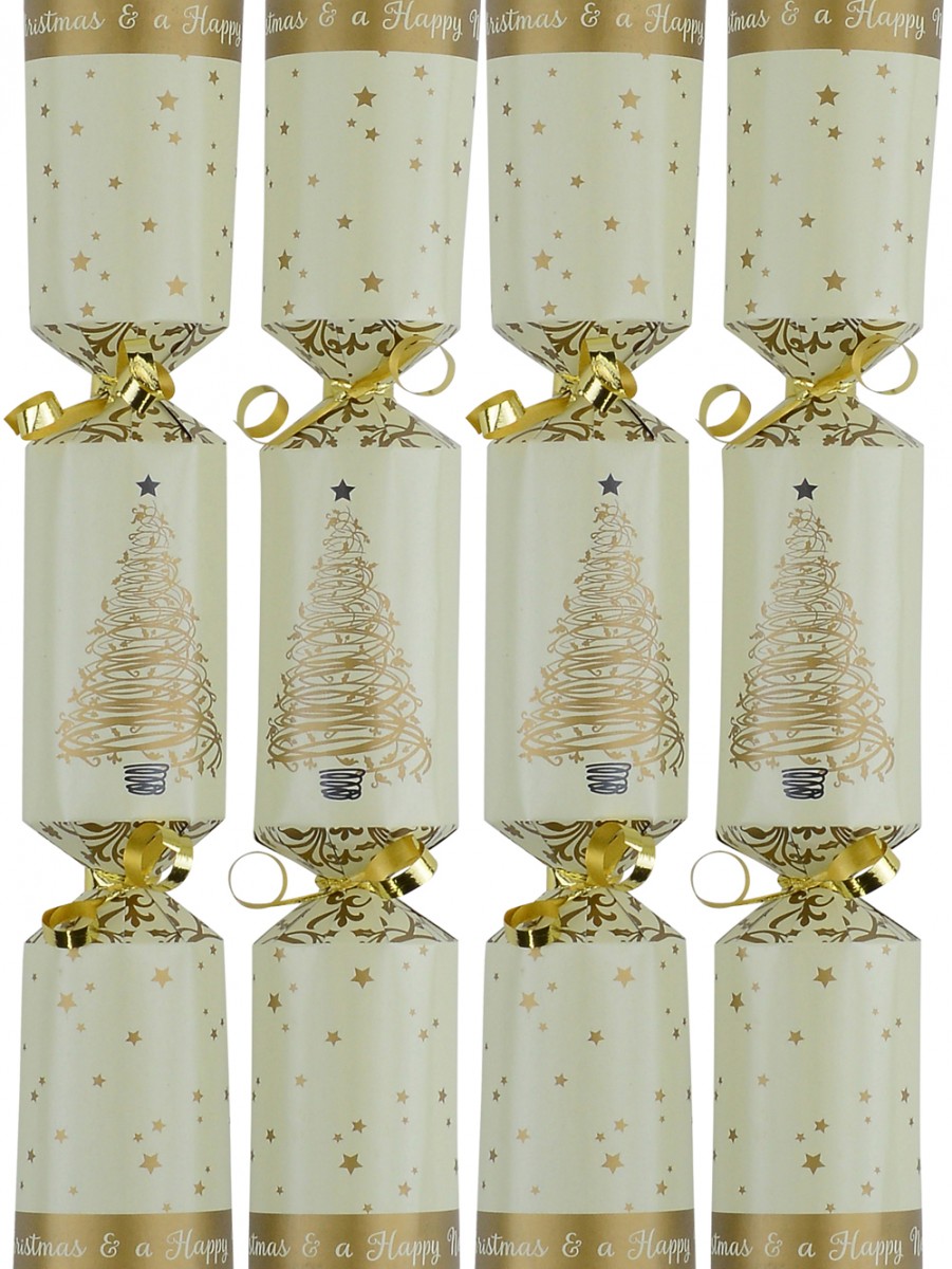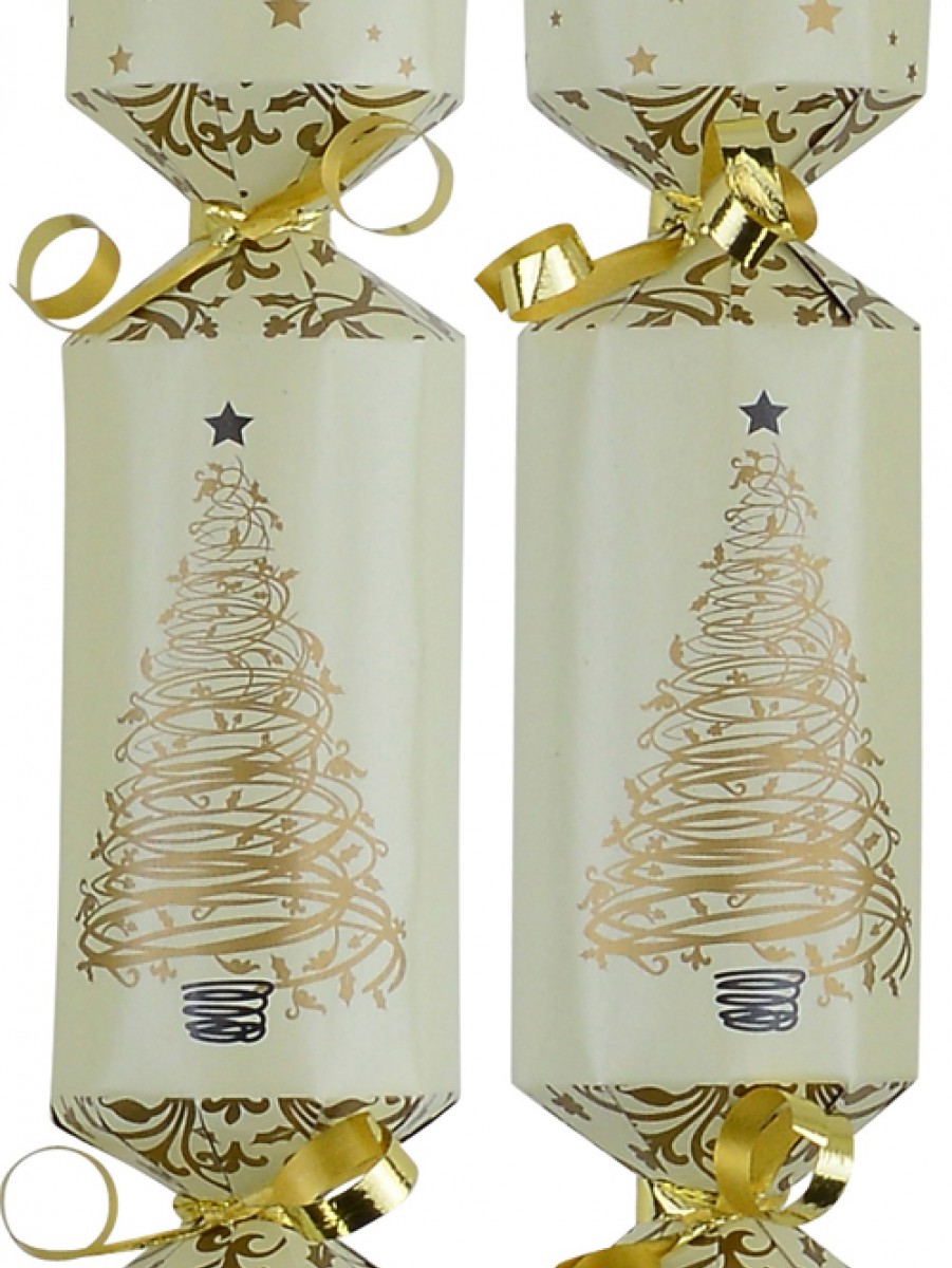 Cream With Gold Christmas Tree & Stars Christmas Cracker Bon Bons - 50 X 26cm