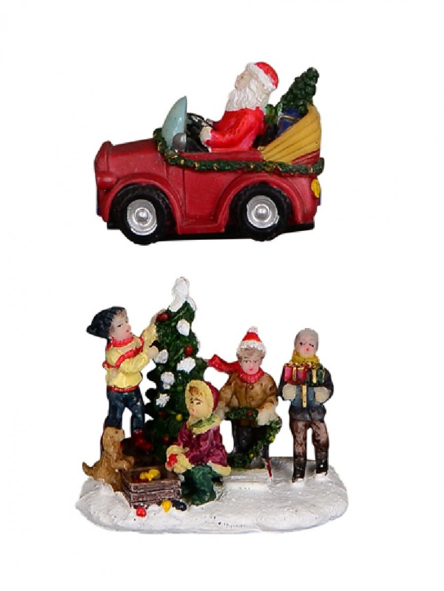 Whether you decide to display it individually or collectively, the Cool Cruising Santa, Decorating Tree & Gift Selling / Buying Figurine Set all have immense decorative value perfect for creating a festive Christmas celebration. Most of the figurines exhibit people's preparation towards a fun filled Christmas celebration by shopping for and/or selling necessary Christmas items just like you are currently.