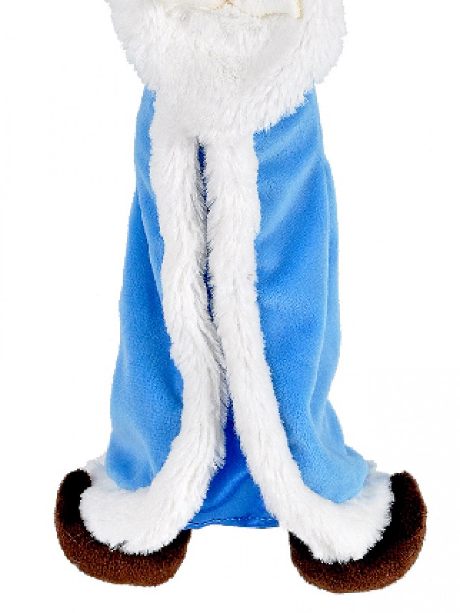 Santa is dressed in a blue Christmas gown with white trim & night shirt with red gloves