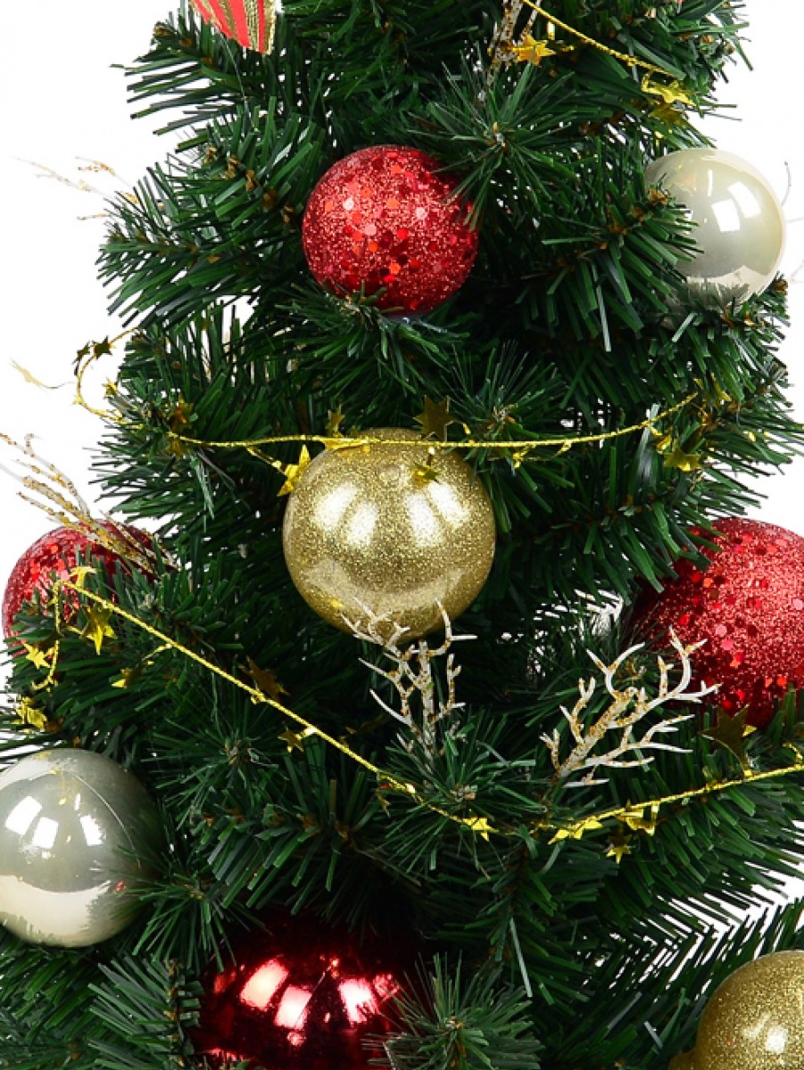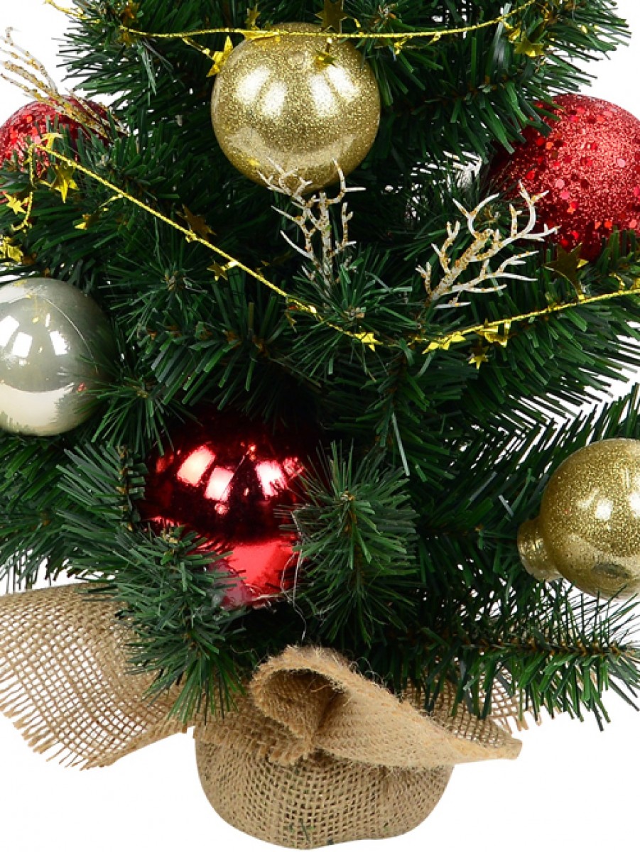 Christmas trees hold a great significance to Christmas. Whether they are small tabletop Christmas trees or actual size Christmas trees, they are believed to keep the evil spirits at bay. If you are looking to add to your decorations or have a small place, Christmas tabletop trees are just the thing for you. This 28cm x 28cm x 60cm tabletop tree is perfect for giving an aesthetic touch to your home. It is adorned with various sized red and gold baubles, wired golden garland and a ribbon to finish the look. Apart from the decorations on the tree, it comes with a cute burlap potted base to support it. Bring on the Christmas cheer this season with this elegant Christmas tabletop tree. This Christmas tabletop tree requires no assembling, just unpack and place it where you like without any inconvenience.