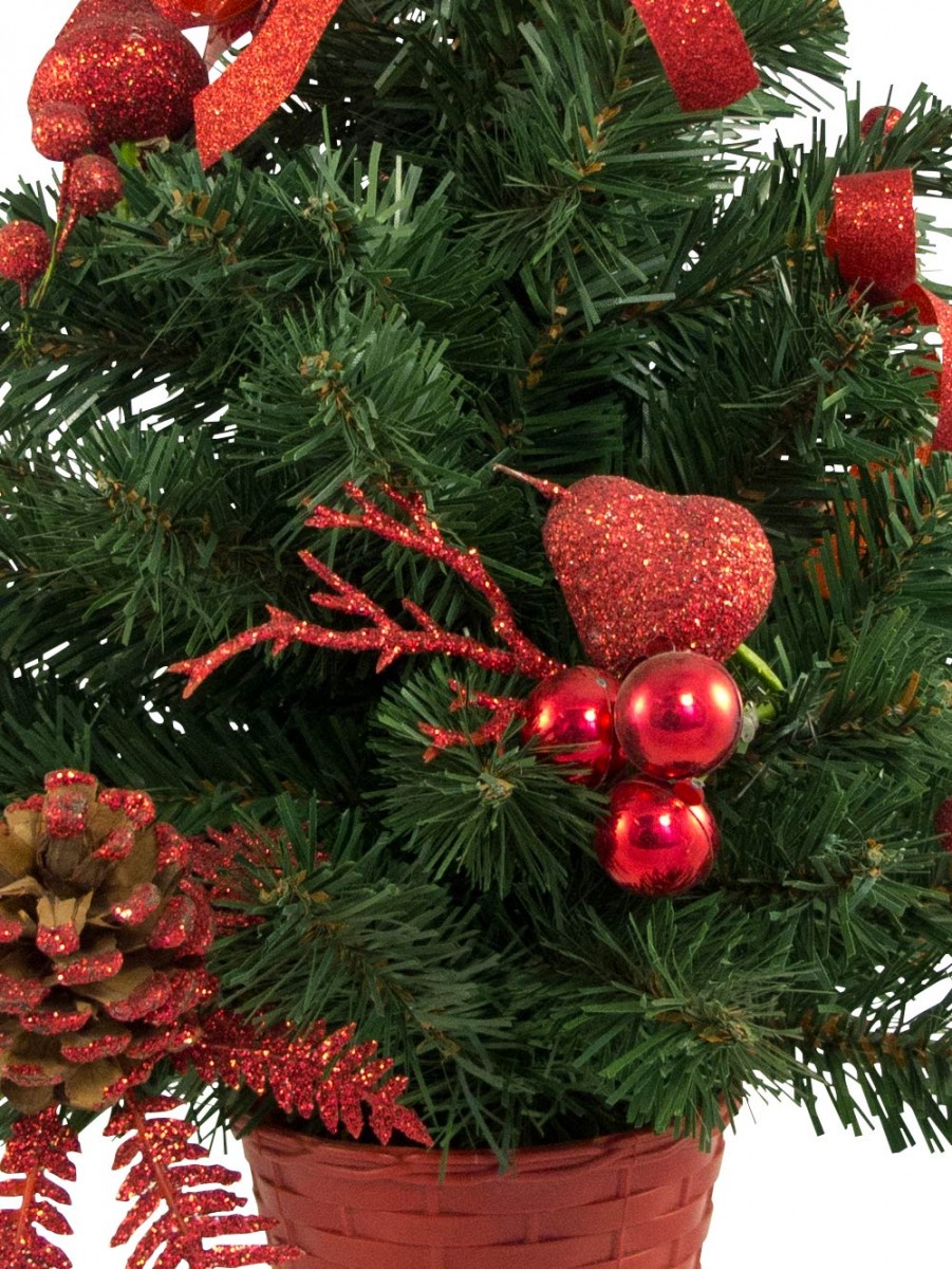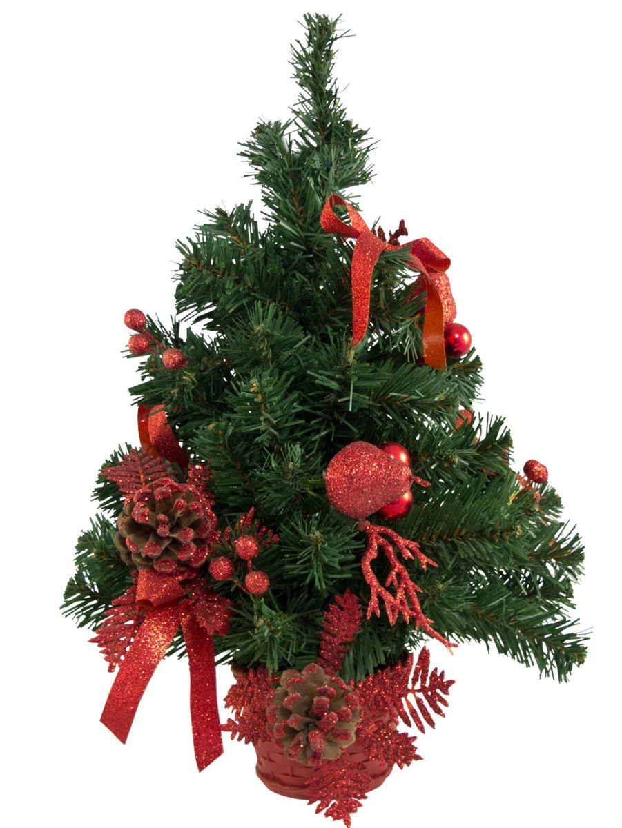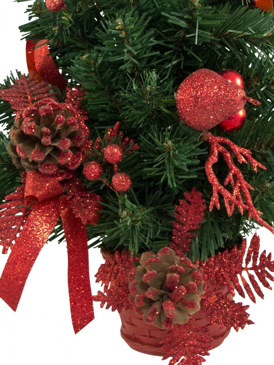 This Table top tree comes decorated with bows, hollies, pear, pine cone and red glittered decorations, all masterfully put together for a surreal look. It sits brilliantly on table tops, sideboards and windows, giving a sparkle to bare living spaces. This tree is perfect for adding a little holly-jolly holiday joy to your home and office with its decorative pieces. It is sure to bring delight throughout this holiday season as this tree is ready to spread Christmas cheer. The decorations are well-spread across the tree so its not lop-sided, and its sturdy basket base ensures that there's no risk of it tipping over by itself.