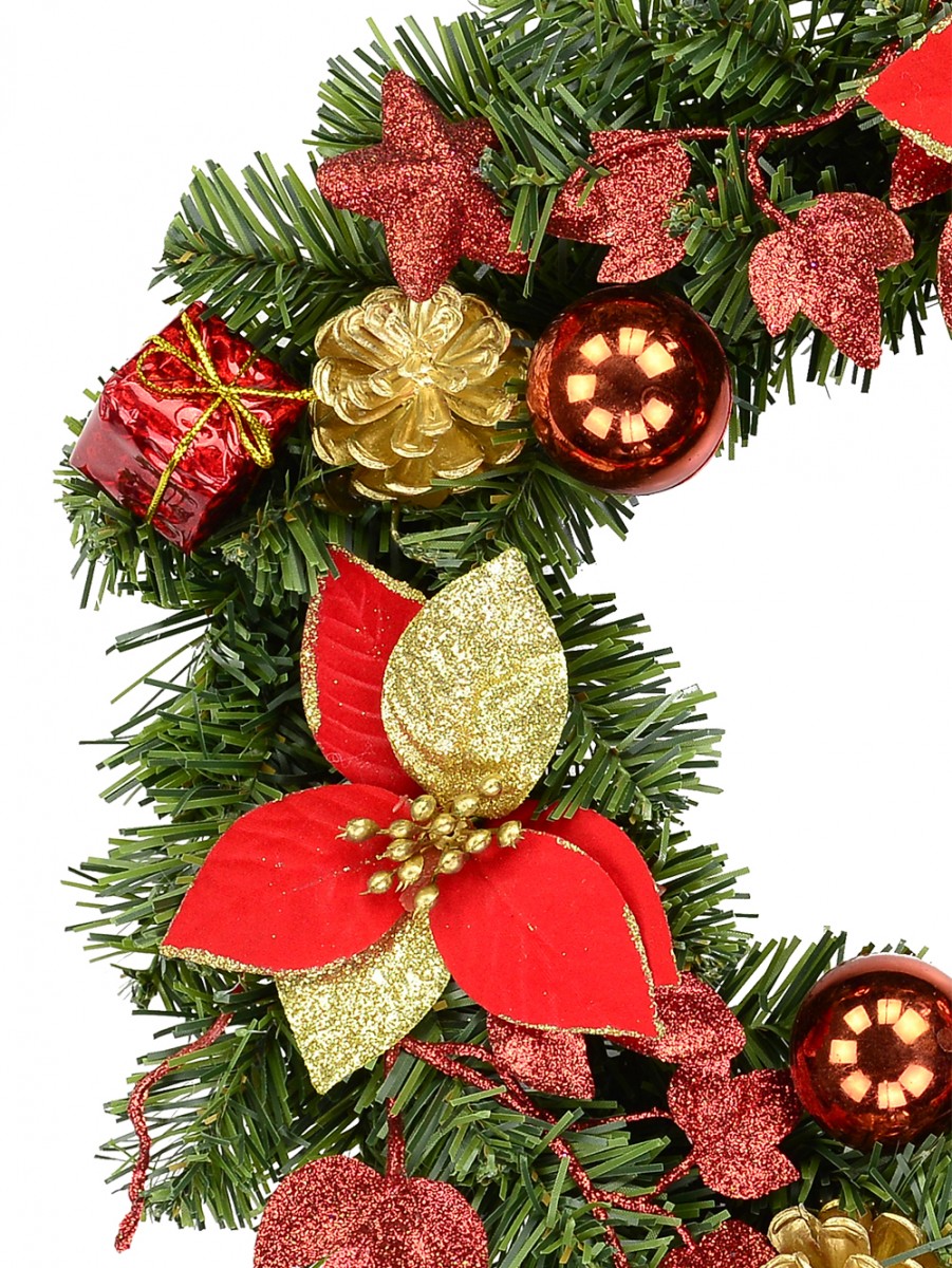 Greet your customers or guests at the front door or inside your home or business outlet with this gorgeous pre-decorated PVC wreath that is a lovely mix of traditional festive colours! It will be one of those wreaths that will last for years to come making it a valuable investment for decorating every season.