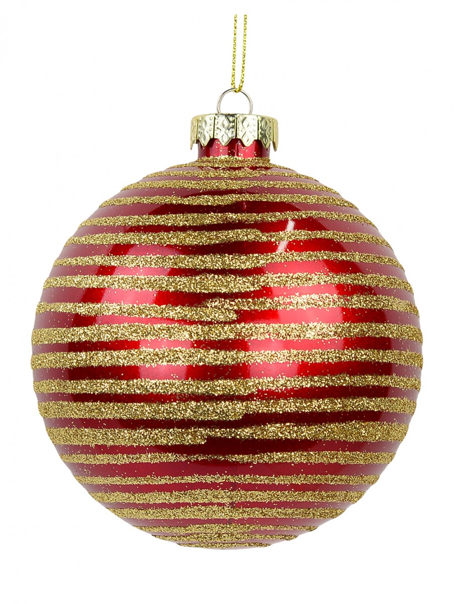 With this deep red bauble with gold glitter stripes, you are sure to make your large Christmas tree look decked out in its festive best, and it will stand out among all your trimmings! This sphere-shaped bauble measures 10cm in dimension and you may add one or more to your cart as you may never have enough of these when you decorate for the holidays.