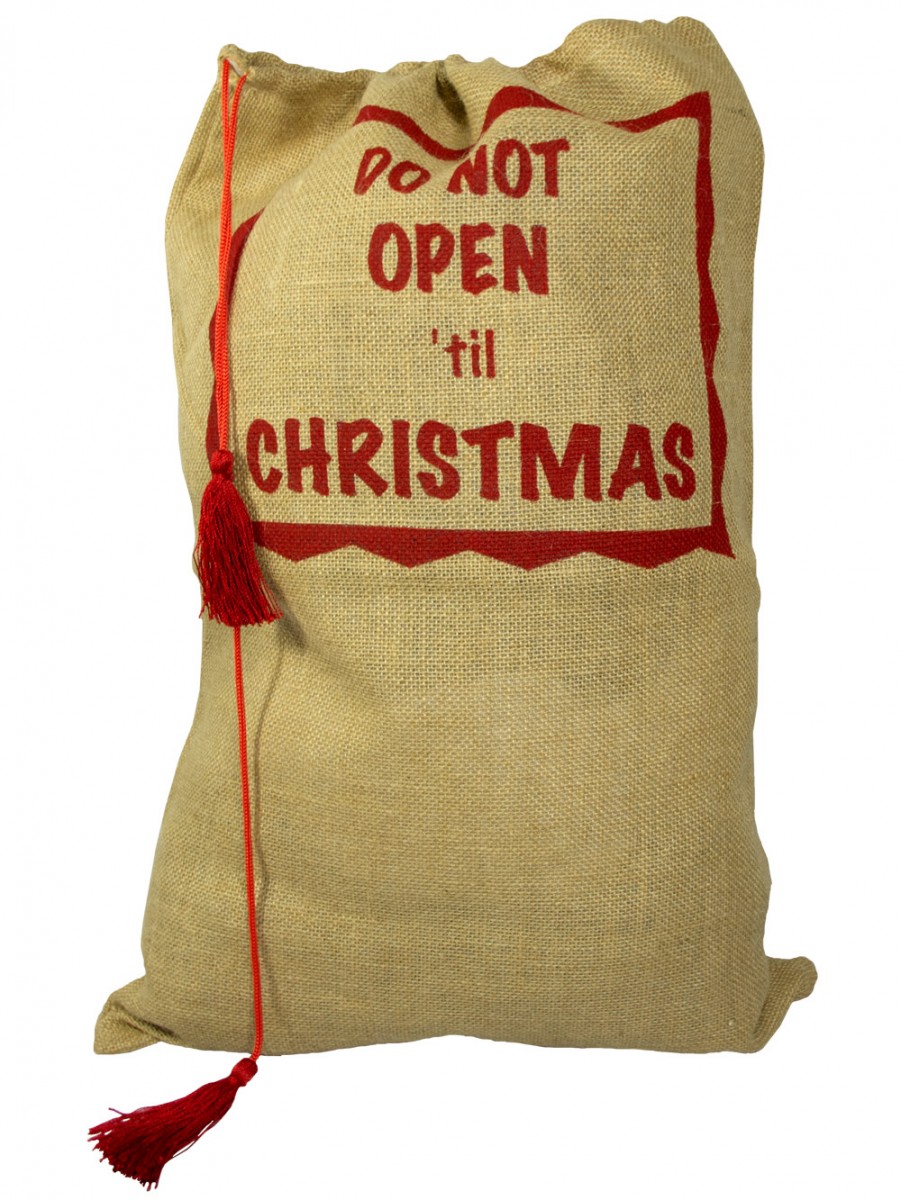 There is nothing quite as tempting as knowing there are wrapped presents under the Christmas tree, but you cannot open them for a few more days. Help the young and young at heart resist temptation with this country style Hessian present sack. Use as a piece of decor for your rustic country Christmas, or use as a functional gift bag for a loved one you know can�t resist trying to take a peek! Made of jute, it has the warning �Do not open �til Christmas� emblazoned on the front in red print. Sack includes a red drawstring with tassled ends for a fun touch and measures 45 cm x 65 cm.