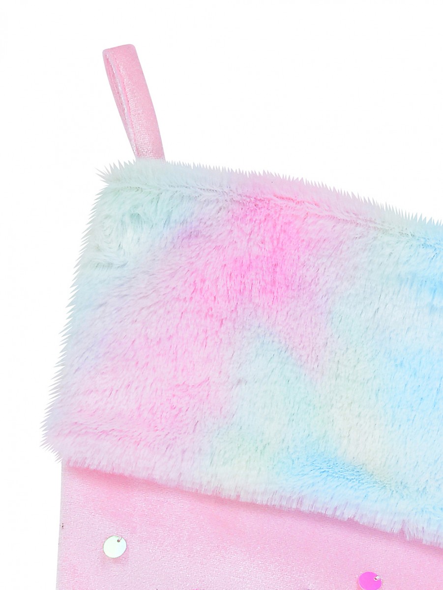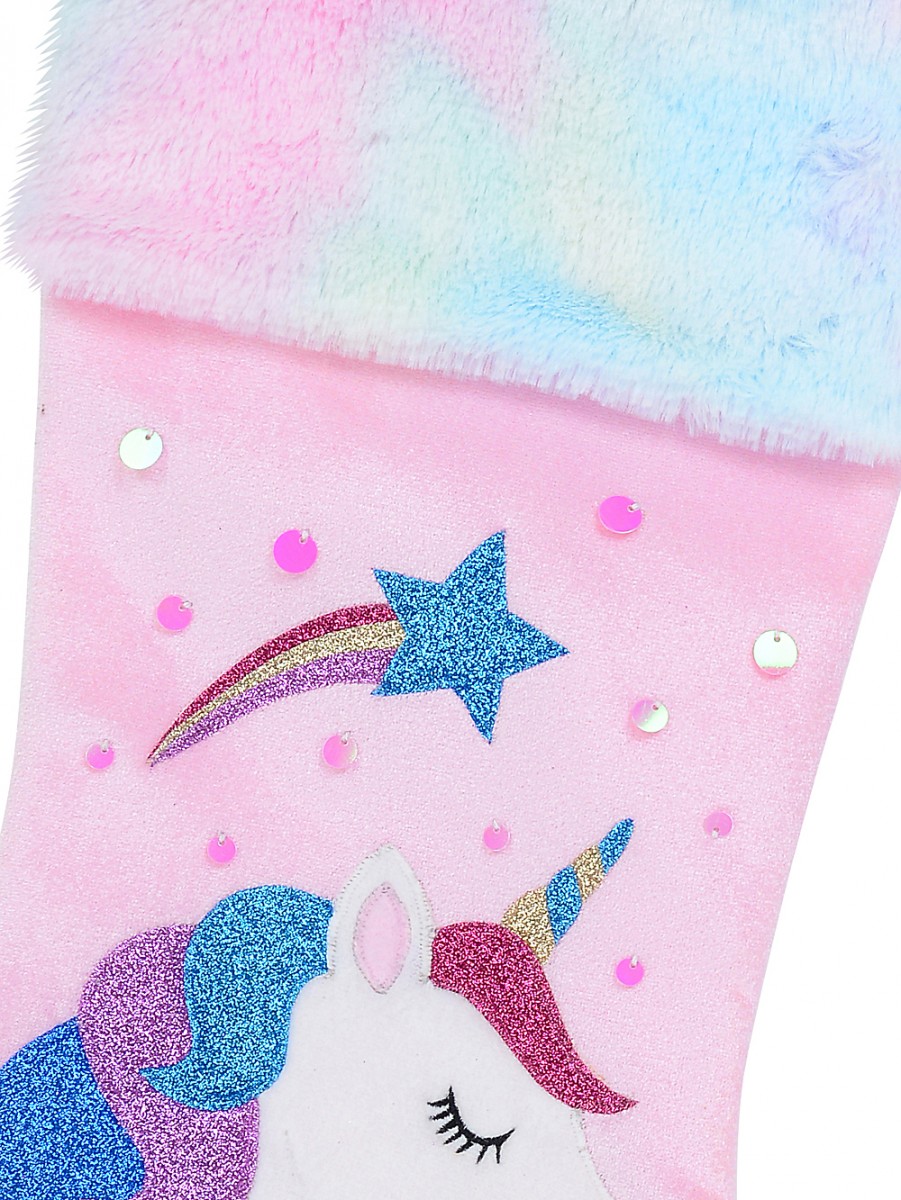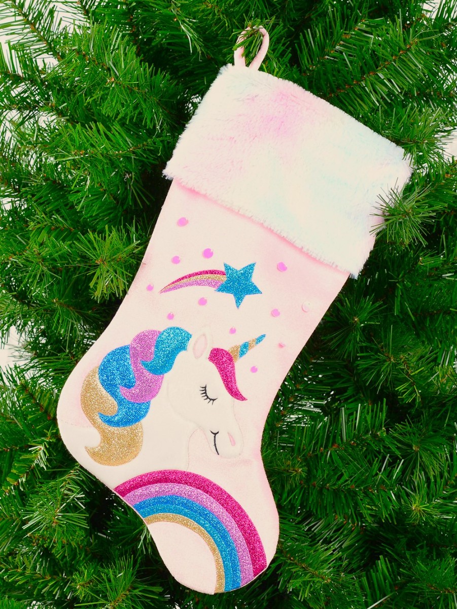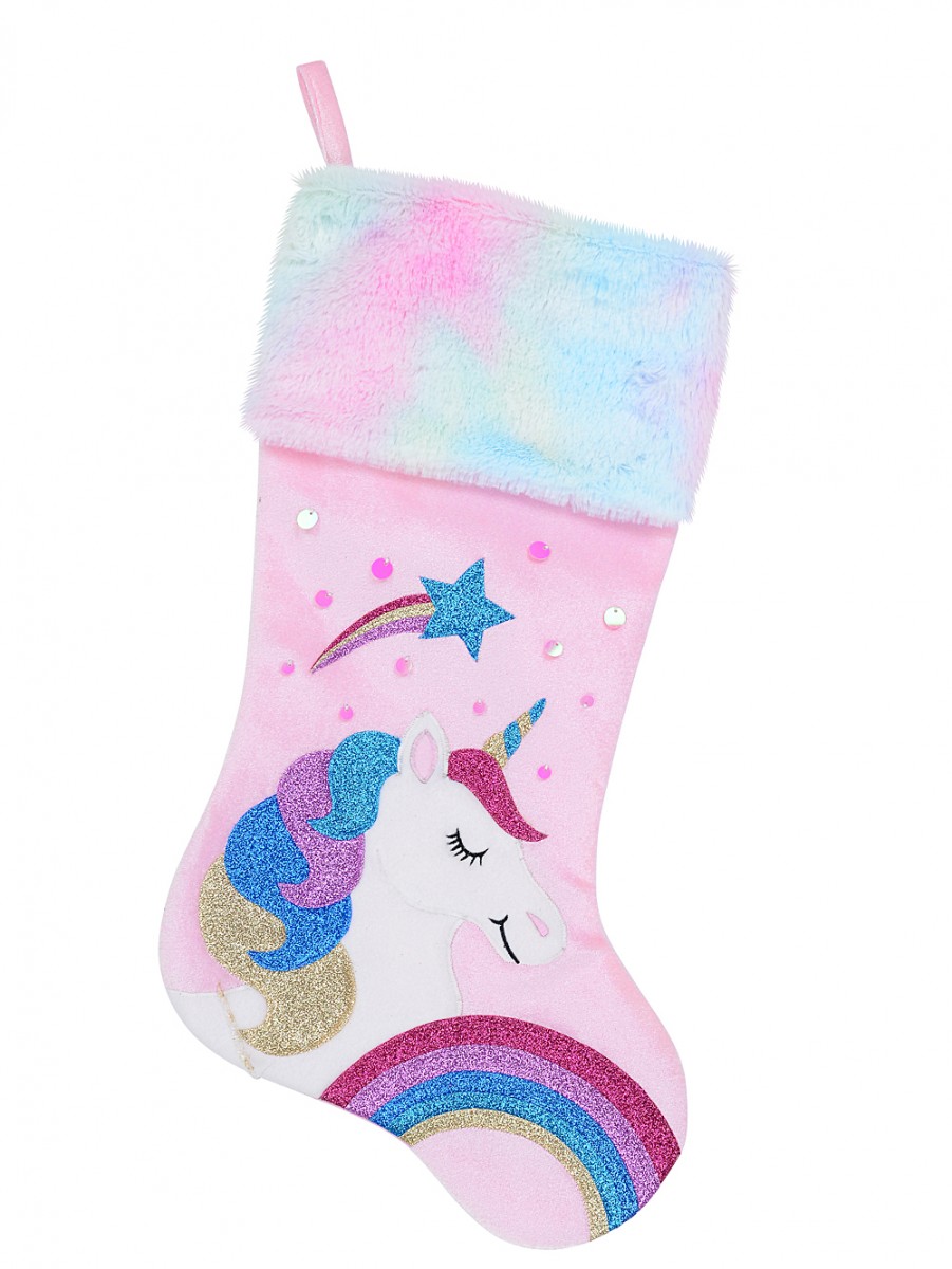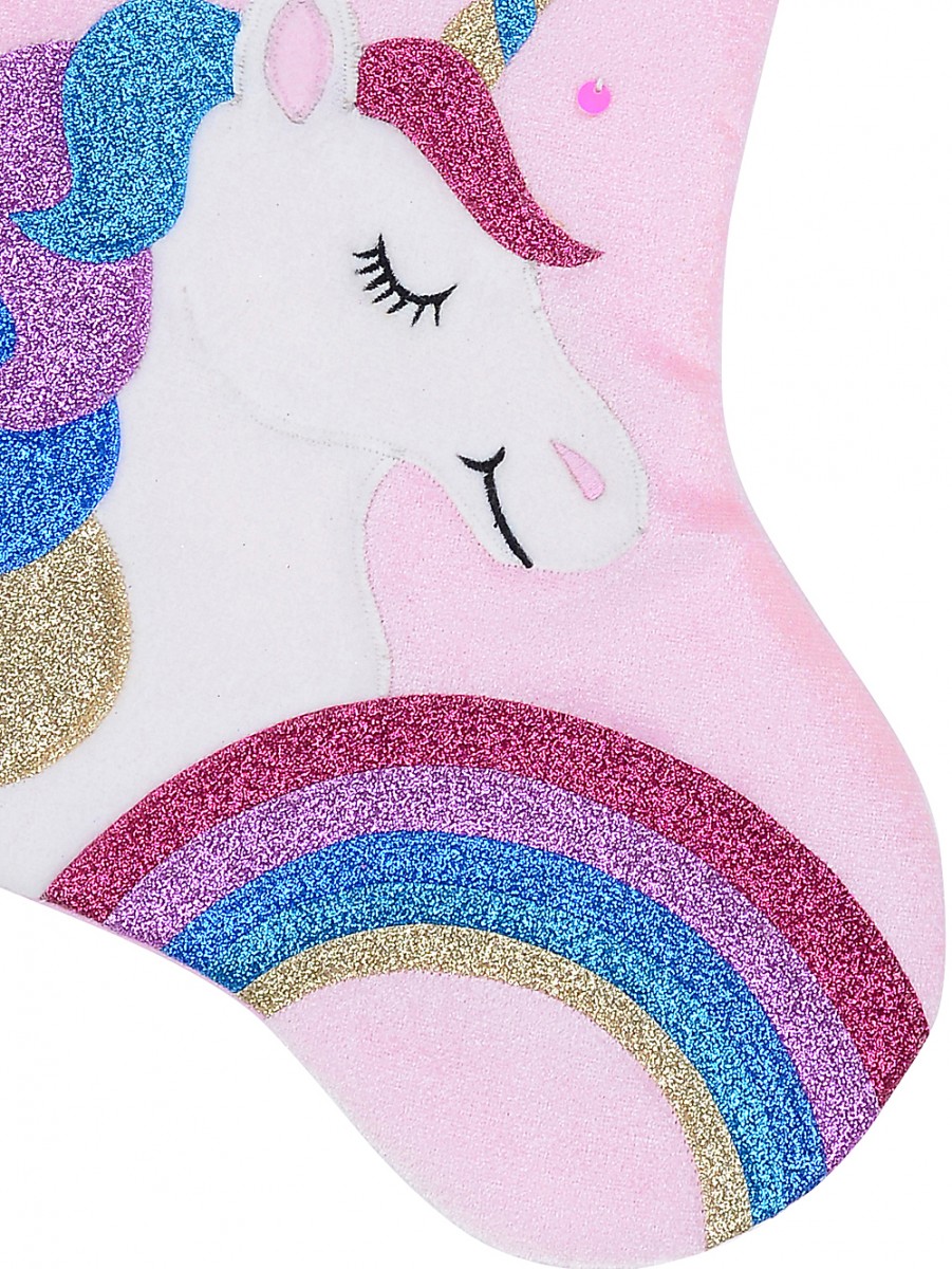 Fabulous Unicorn, Rainbow & Star Applique Velvet Christmas Stocking is a cute, spellbinding choice for transforming your fireplace mantel into a festive display. Asides from being a sophisticated addition to a fireplace, it can enhance the look of a decorated Christmas tree or dangle beautifully at the base of your chimney! The best part? This Christmas stocking is warm and cosy with that homespun look.