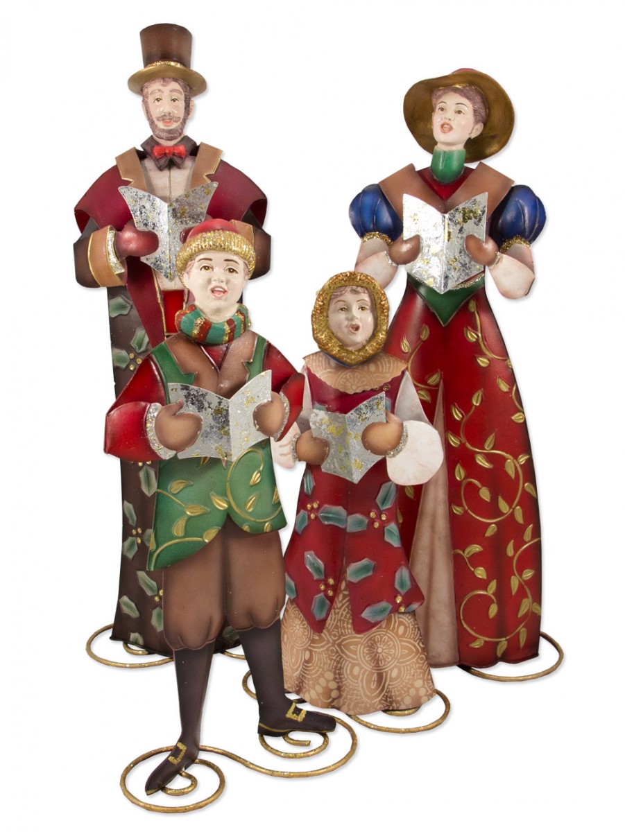 The tradition of going from home to home while singing Christmas carols started in Victorian England and since then, it's become a popular tradition every year during the holidays. Pay homage to all those who sing their little hearts out in the freezing cold by displaying this Tin & Resin Carolers Set. Although their entire appearance seems to be 3 dimensional thanks to their exquisite detailing, only their faces are 3D. The set consists of a family of four carolers ? a mom, dad, son and daughter ? all of whom are dressed in their most stylish holiday wear that's accented with glitter and leafing. They are all of varying heights and sizes with the father being the tallest at 460mm. All family members are able to stand upright via a gold coil stand at the base of each. They're a lovely addition to your home that will certainly help you incorporate some holiday cheer.