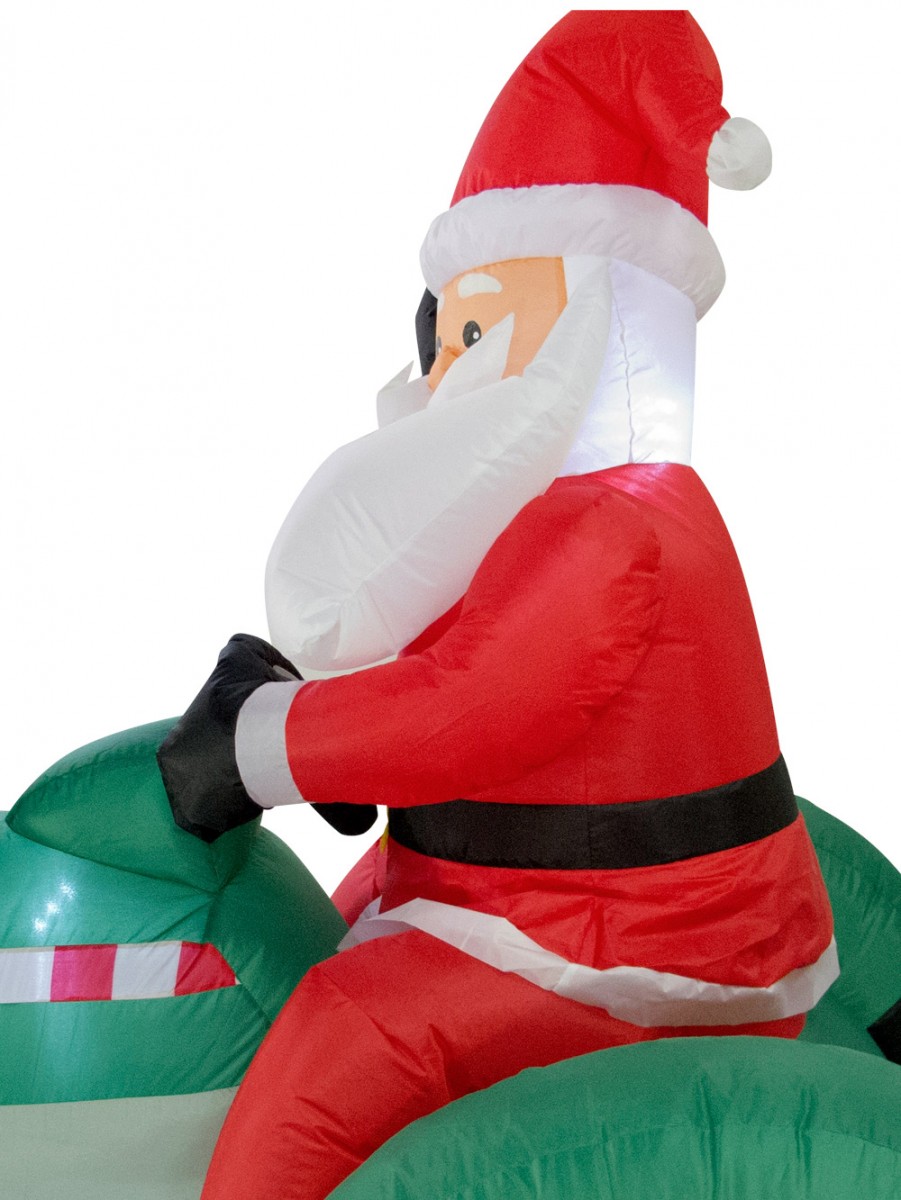 Not only is this decoration totally out of character for our Father Christmas, it is extremely delightful and welcoming. Its size enables you to set it up anywhere in the house, and even in your backyard as a symbol of the Christmas cheer. You also do not have to waste any breaths to inflate it: just turn on the internal fan and watch it form! It also comes with additional ropes and pegs to help you set it up and is illuminated from the inside. That much for a price significantly lower than retail is better than most Christmas deals you could ask for!