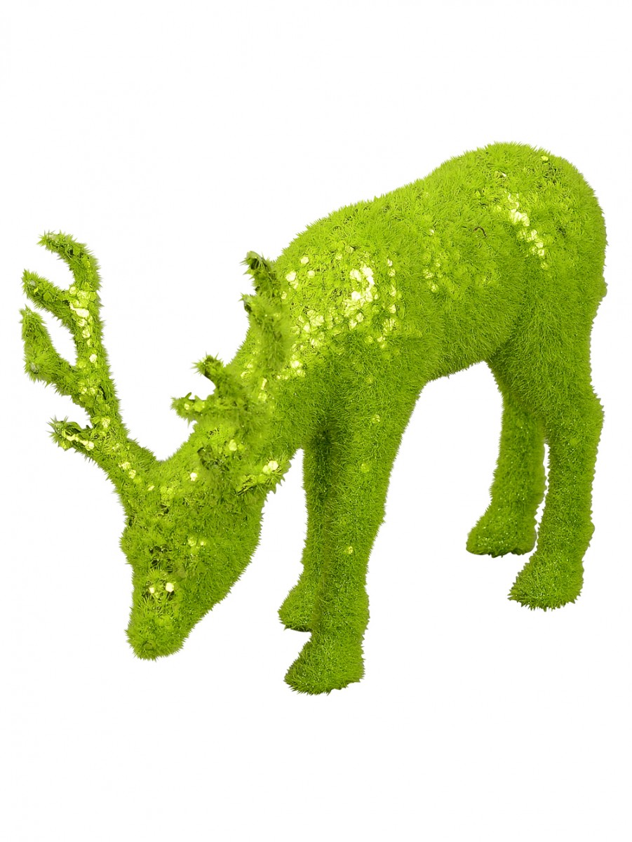 Our Feeding Lime Green Forest Reindeer Ornament design brings the feel of the woodlands into any place of residence or business. This vibrant lime green forest feeding reindeer ornament has faux fur to give it a realistic texture with gradated sequins on the back and on the antlers to add some lustre. It is sold in one piece and has a total length of 26cm, 18cm width and a height of 11cm.